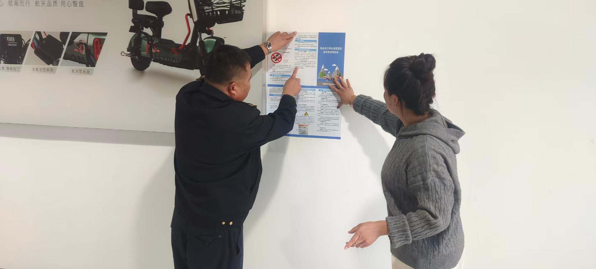 市场监管所对辖区电动自行车标准变更及进货查验明白纸发放张贴