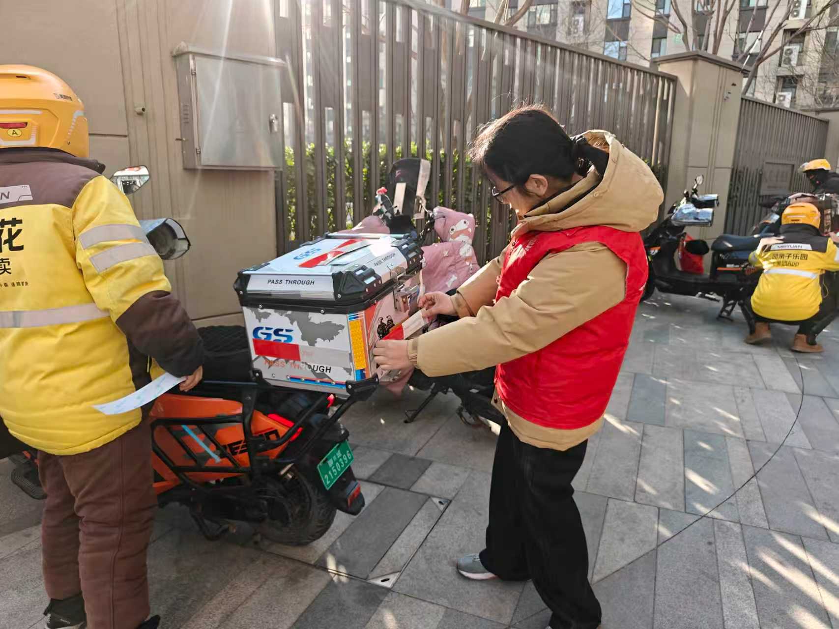 湖西街道开展“从心出发 骑心护航”冬季送温暖护安全活动,为外卖小哥赠送爱心护膝和反光贴,为他们的出行保驾护航。