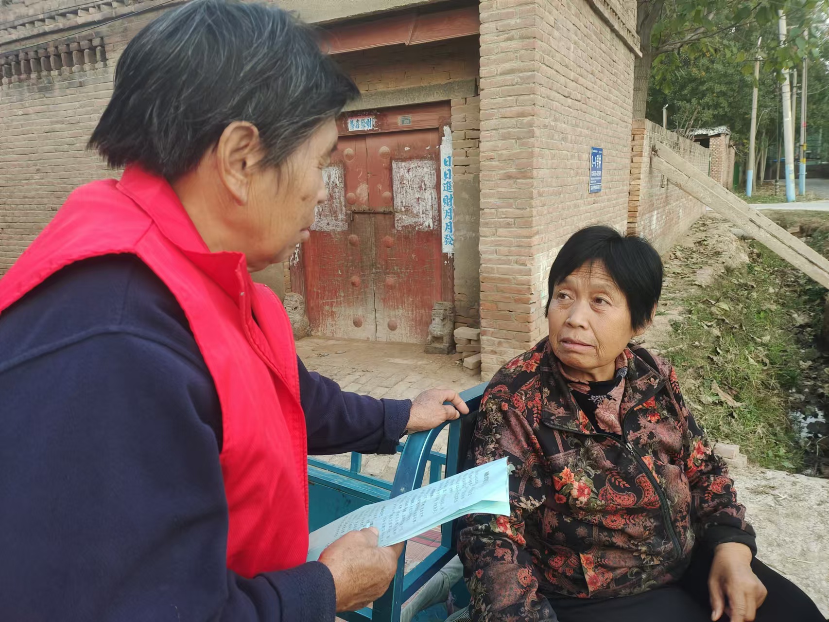 八里新村志愿者在李八里开展“关爱老人”传递正能量的志愿服务活动,活动中志愿者走访本村的老人家里对其进行关怀和慰问。