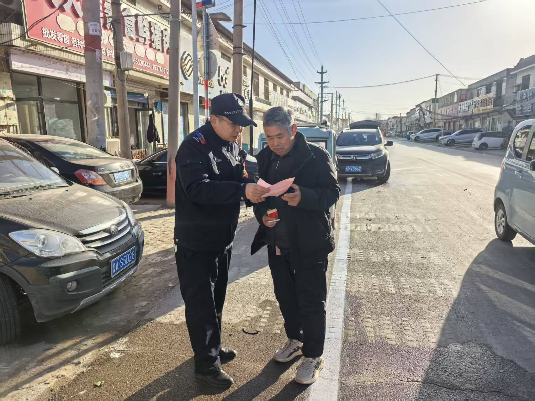 莘县公安局十八里铺派出所志愿服务队到辖区街道组织开展交通安全宣传活动,重点宣传开车不喝酒,喝酒别开车。安全驾驶,宁停三分,不抢一秒。