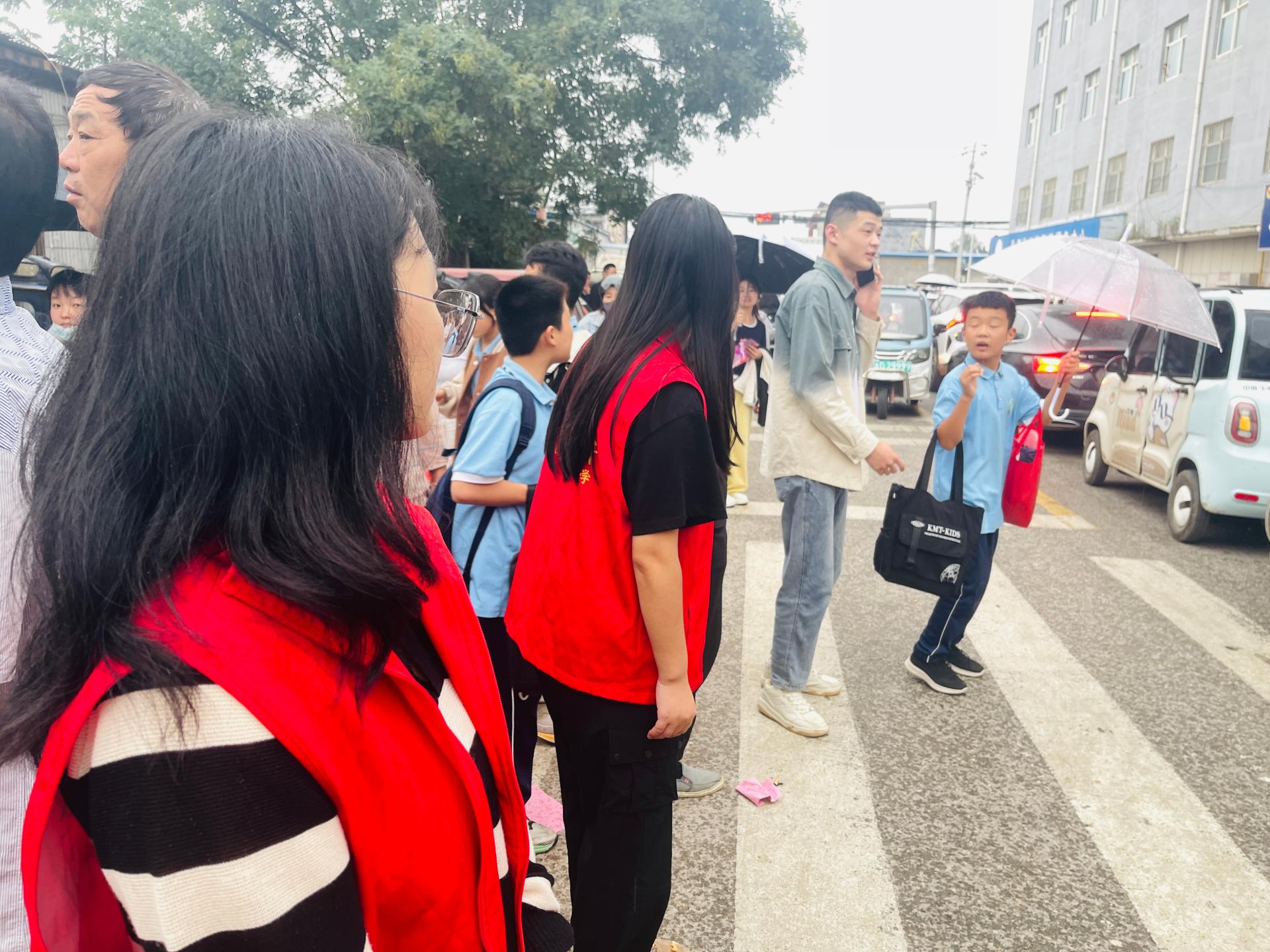 周五学生放假,我校学雷锋志愿者设置爱心公路执勤岗,负责在学校大门两侧公路疏导交通,保障公路畅通,避免堵车。