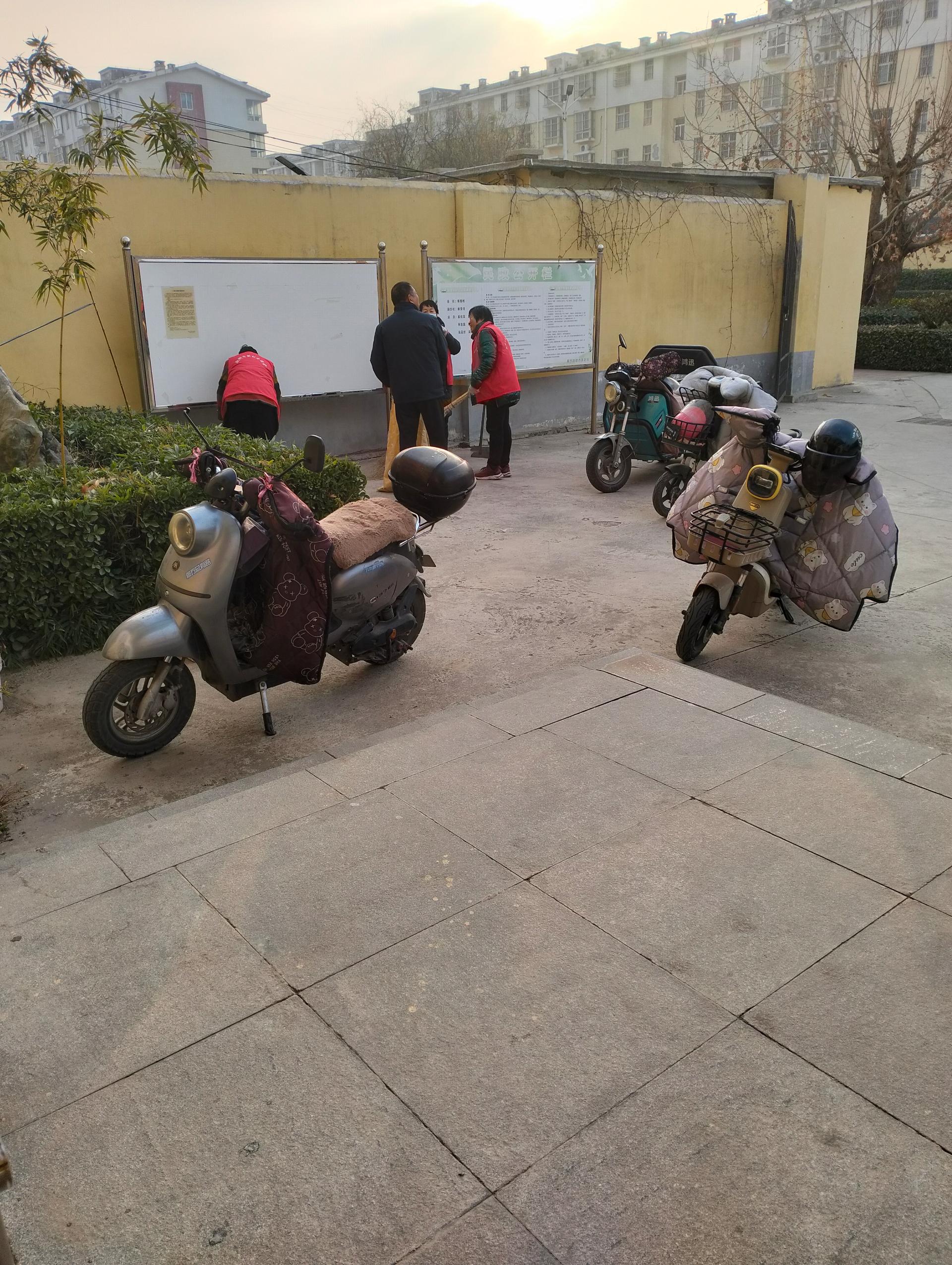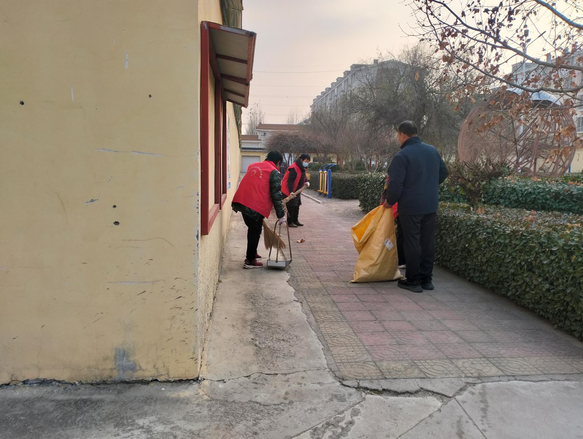 志愿者为小区百姓服务,打扫卫生、美化环境