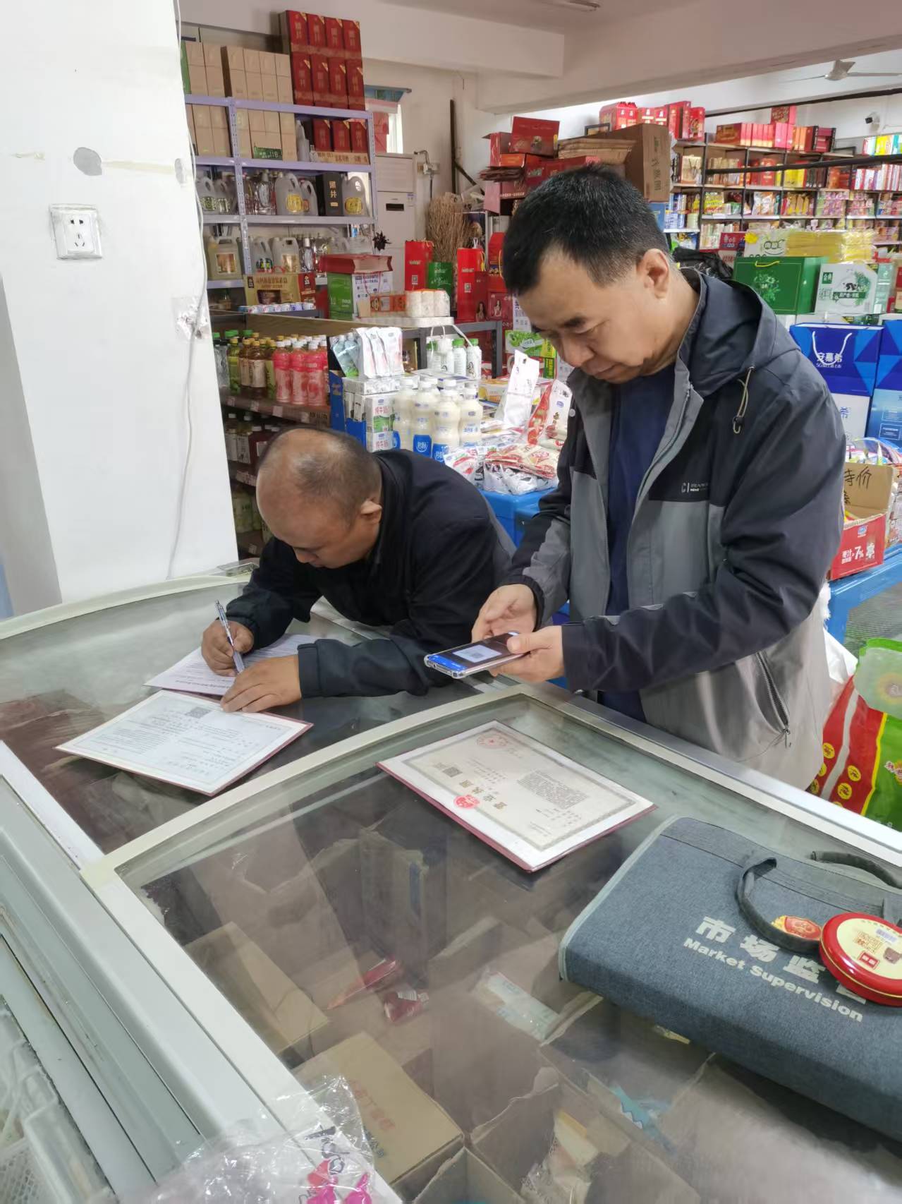 县局计 量 科联合 人和 所 对食 品 经营户 进 行检查....