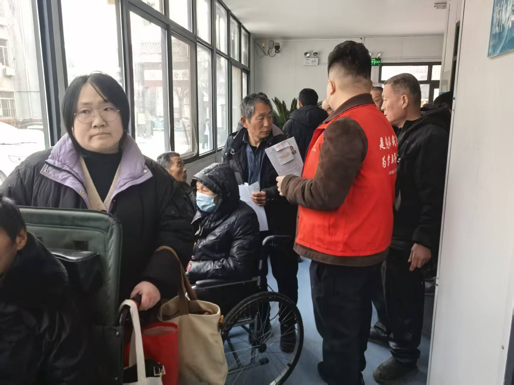 冠县残联心连心一家人为申请办理残疾人证的群众提供志愿服务。