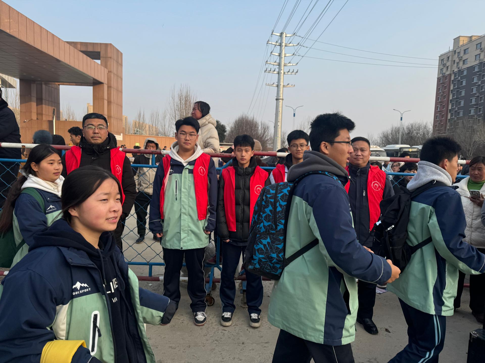 共青团莘县莘州中学委员会在学生放假离校之际,组织青年志愿者维持学生离校秩序,疏导交通,保障学生离校安全。