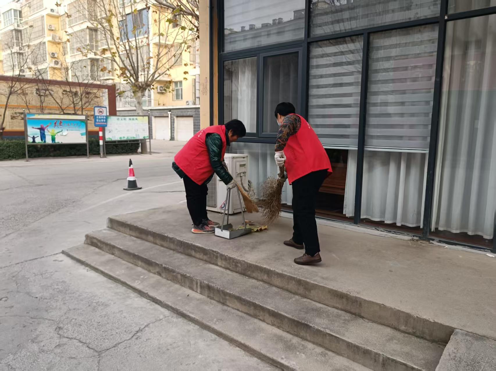 向雷锋同志学习,学习雷锋好榜样。志愿者无怨无悔为小区百姓服务,打扫卫生美化环境,志愿服务,不计报酬。