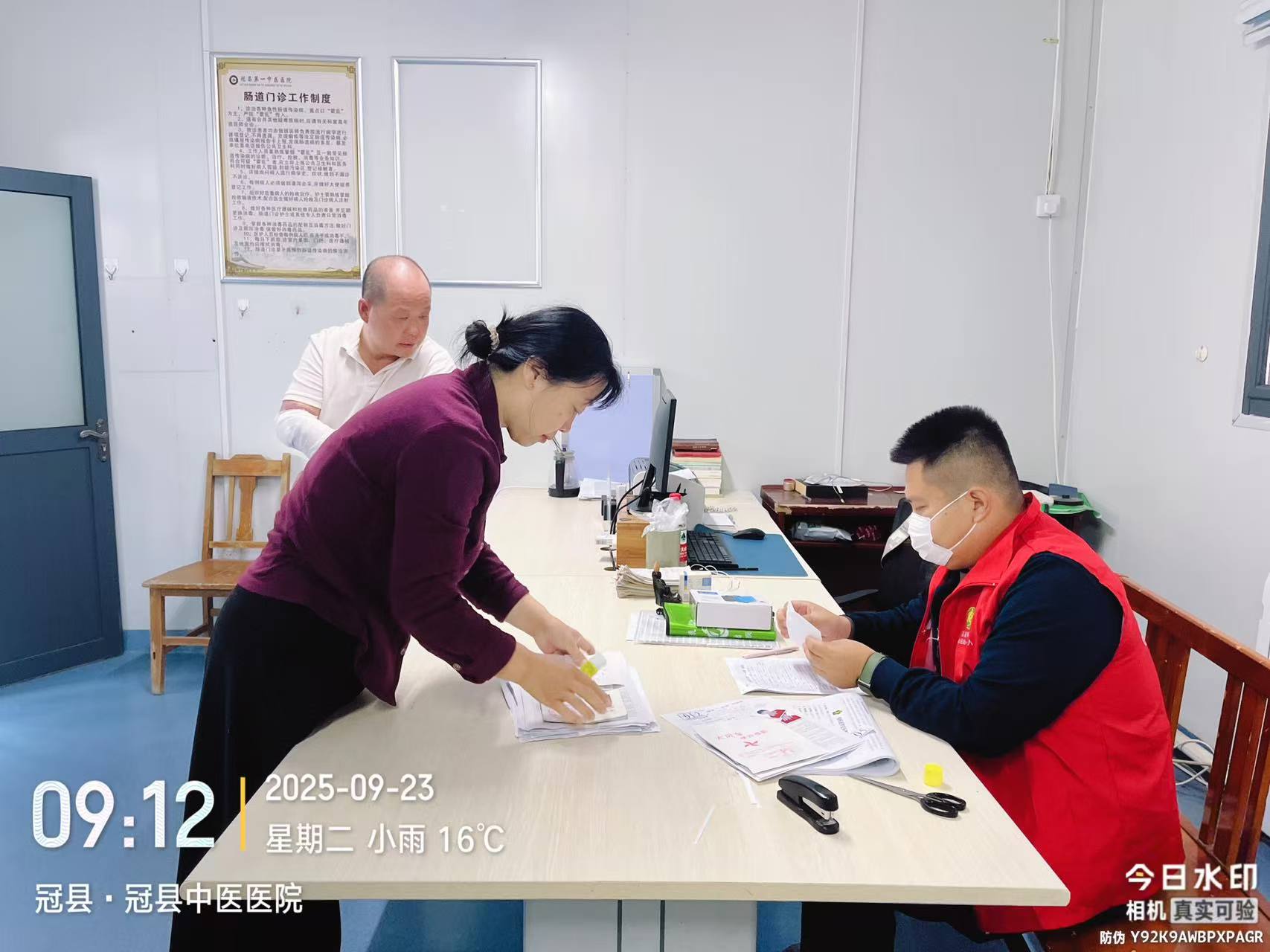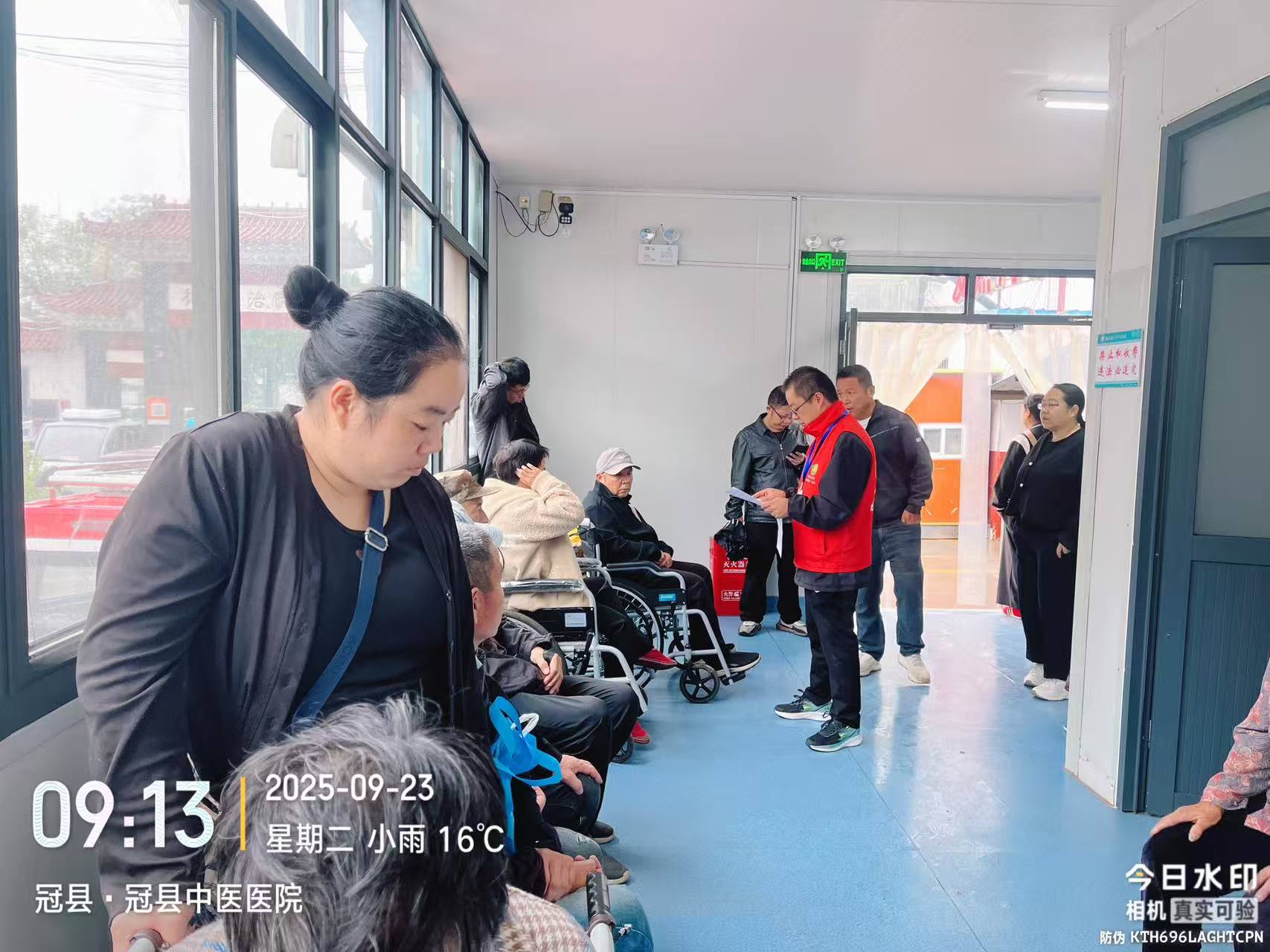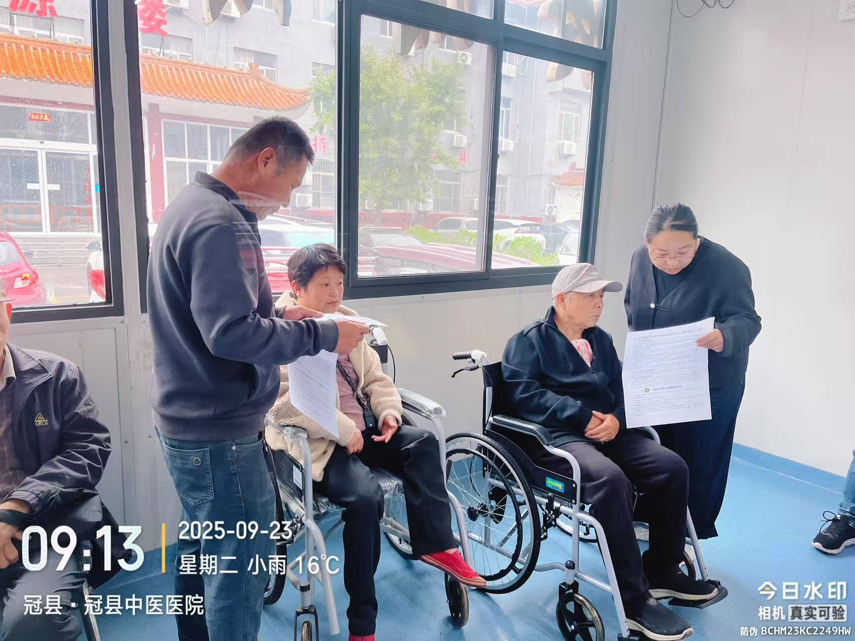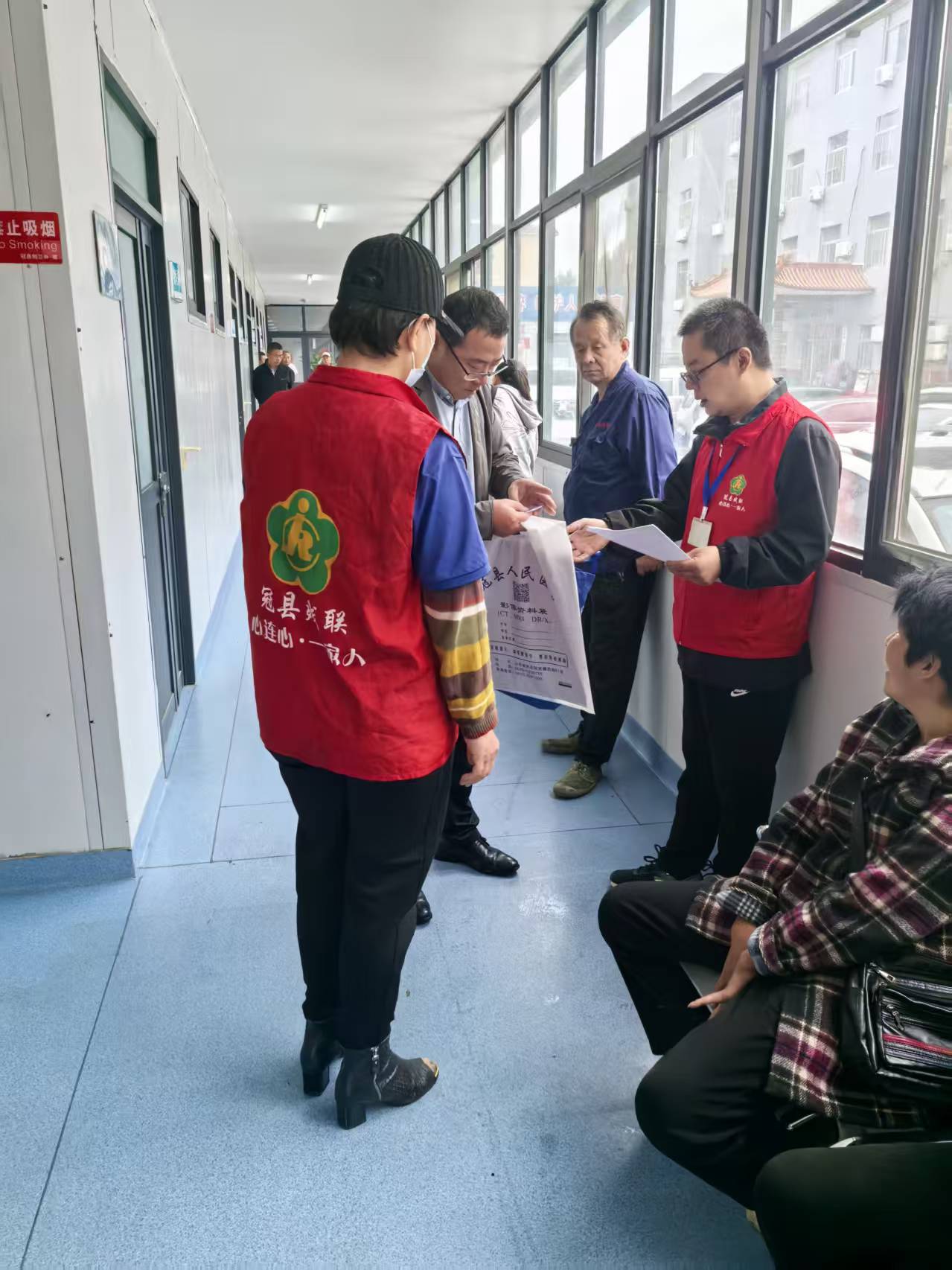 冠县残联心连心一家人为申请办理残疾人证的群众提供志愿服务。