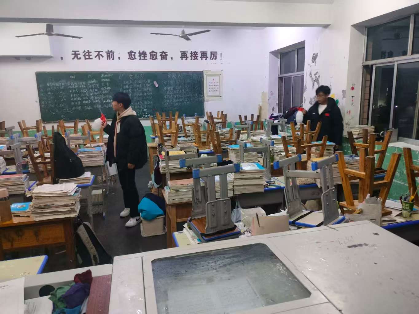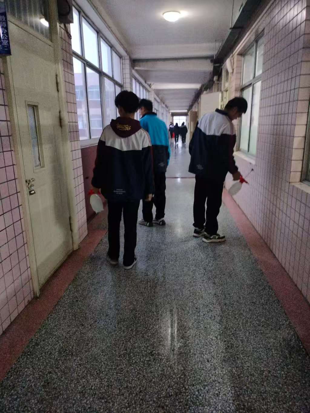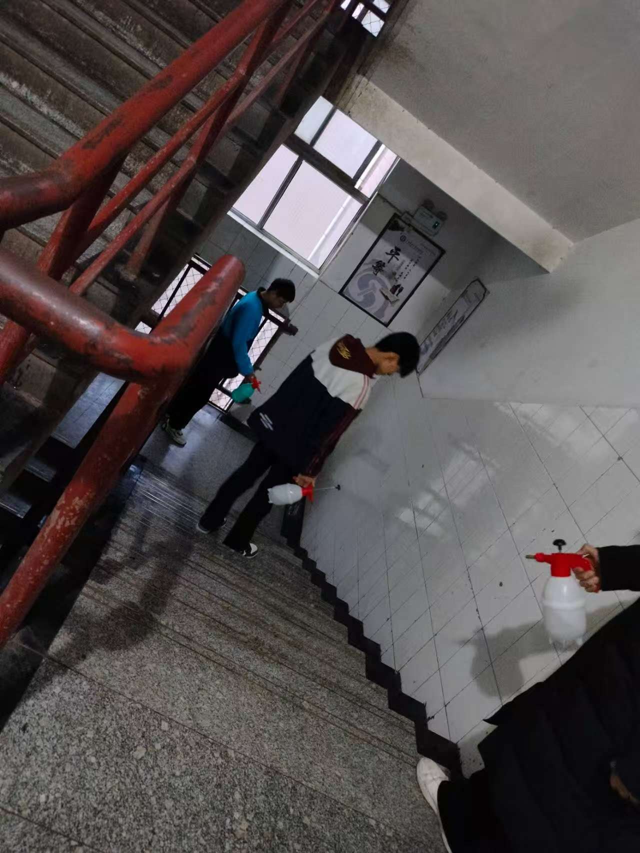 近期学生感冒比较严重,组织志愿者对校园和教室进行全面消杀,防疫健康,从我做起,给同学们一个安全健康的学习环境。