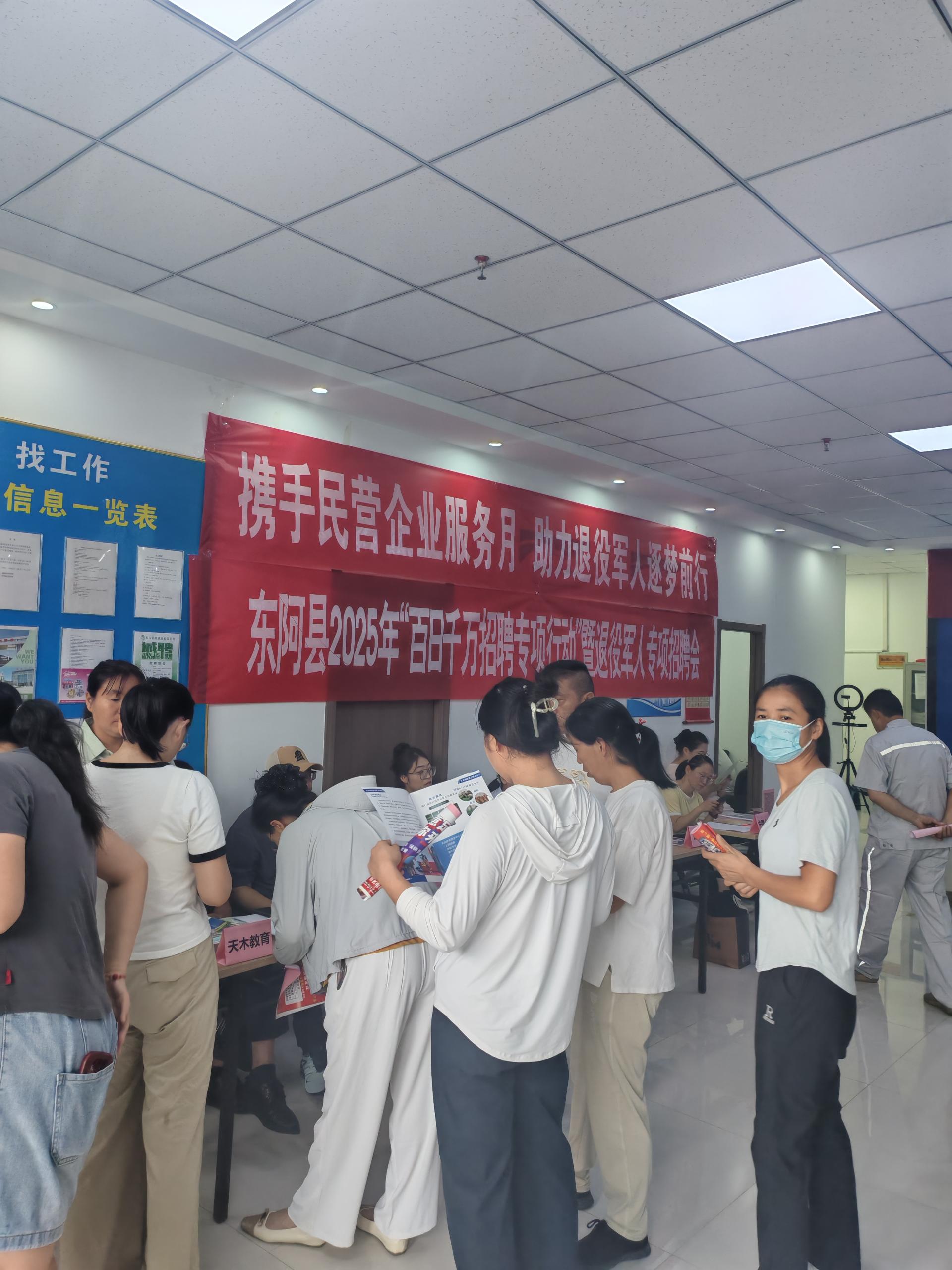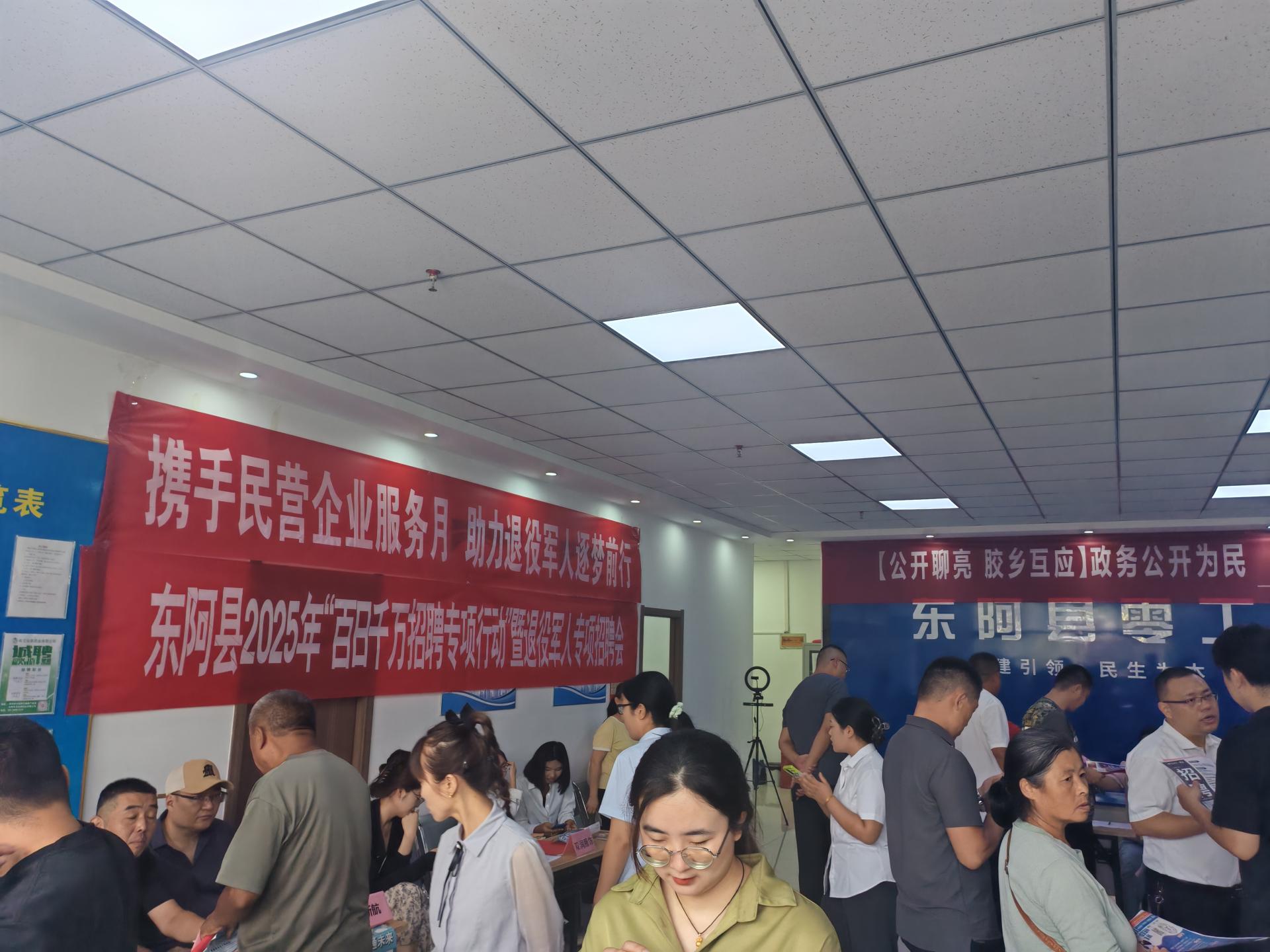 8月26日在东阿县零工市场举办东阿县2025年百日千万招聘专项行动,暨退役军人专项招聘会。30余家用人单位带来500余个岗位,满足各类求职者就业创业需求。