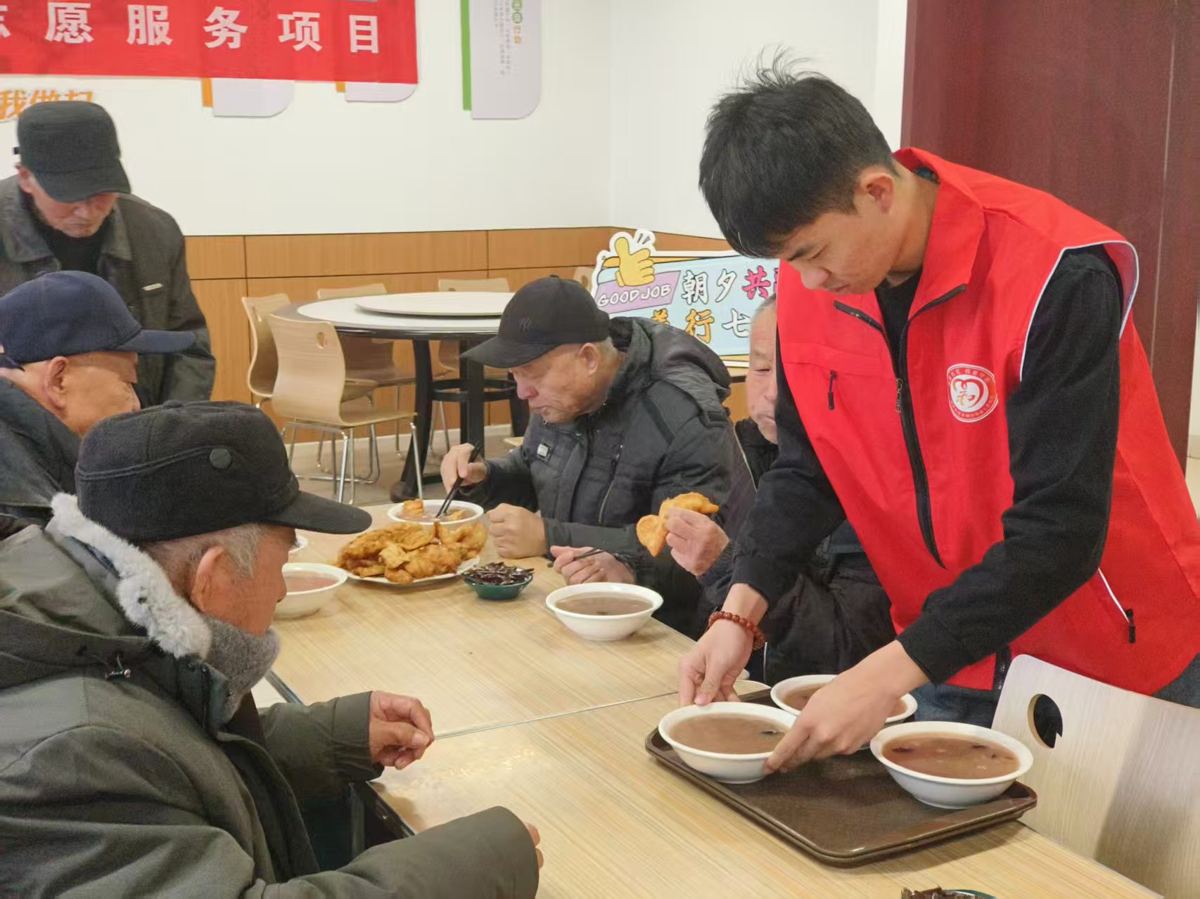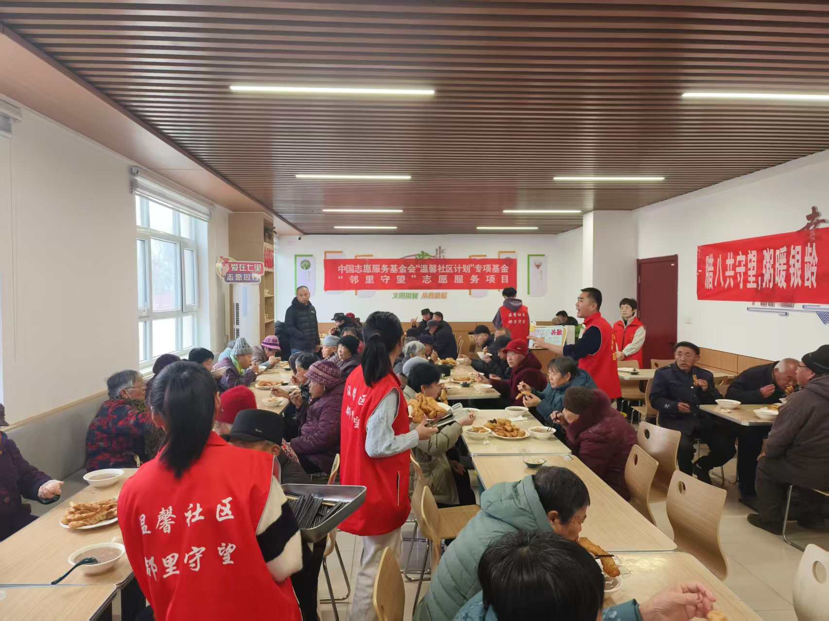 七里社区举办”福粥送温暖 邻里一家亲”腊八节传统文化美食分享活动,志愿者分享传统文化美食,维护现场秩序,协助活动开展,传递邻里温暖与节日祝福。
