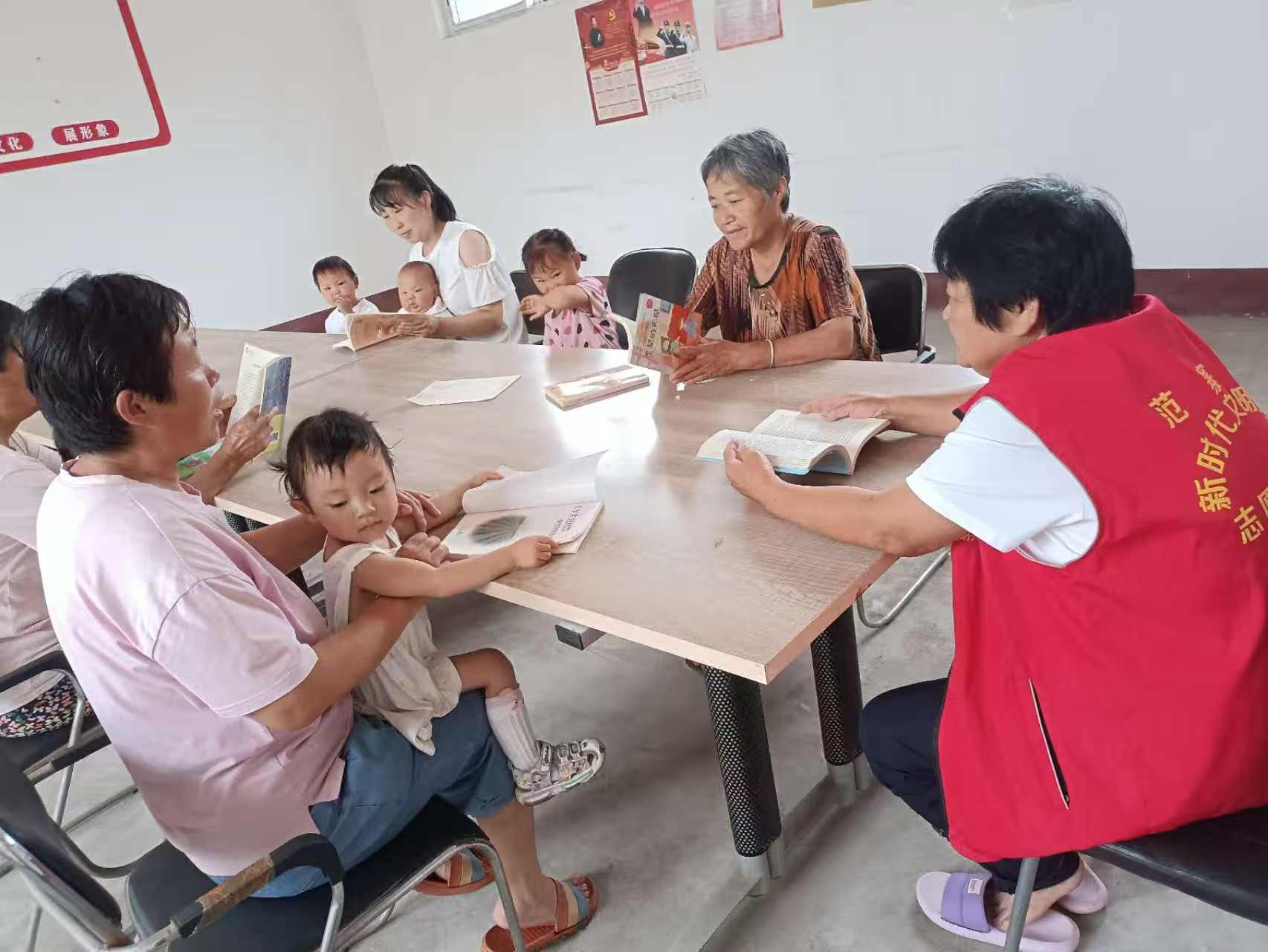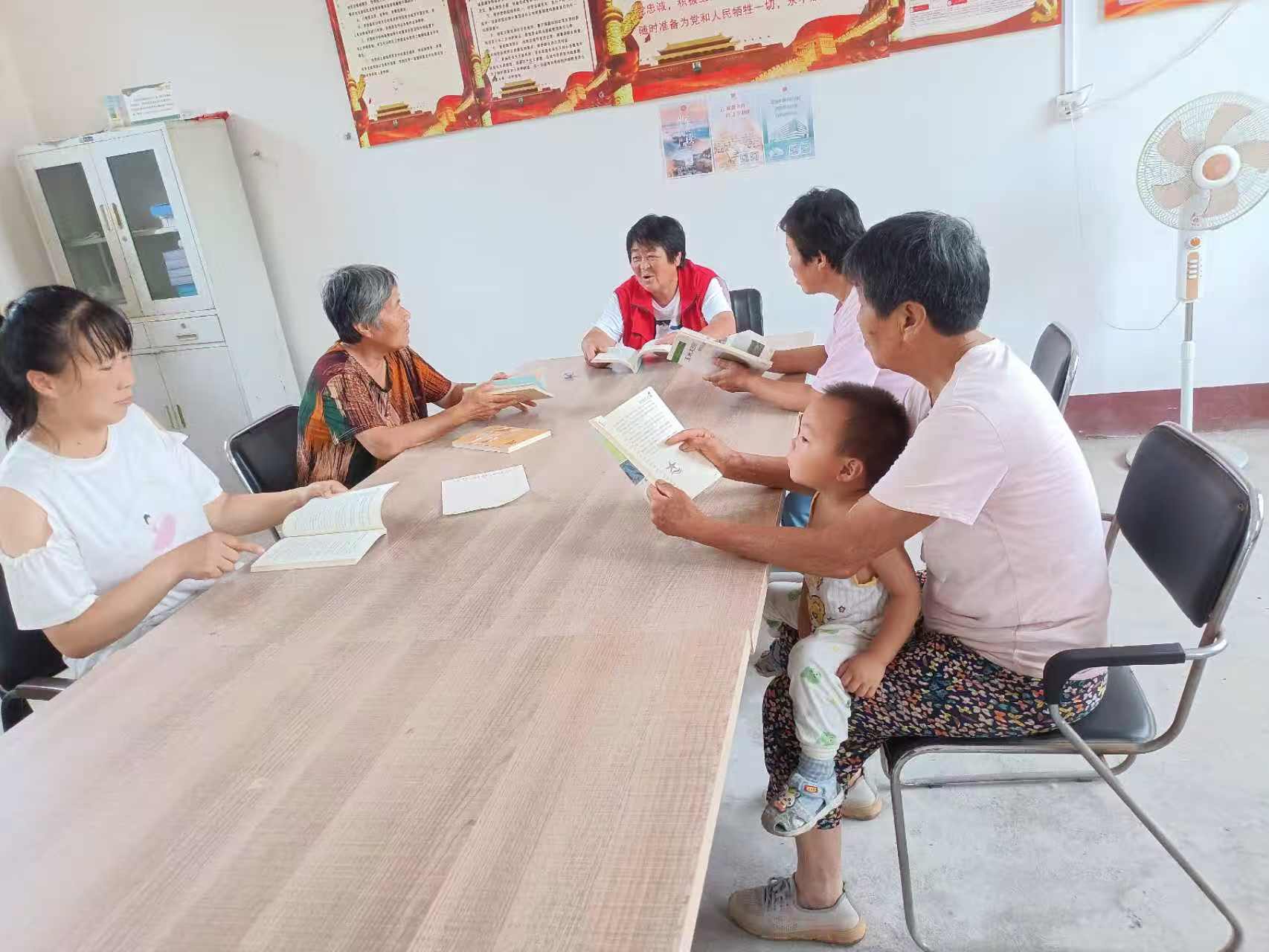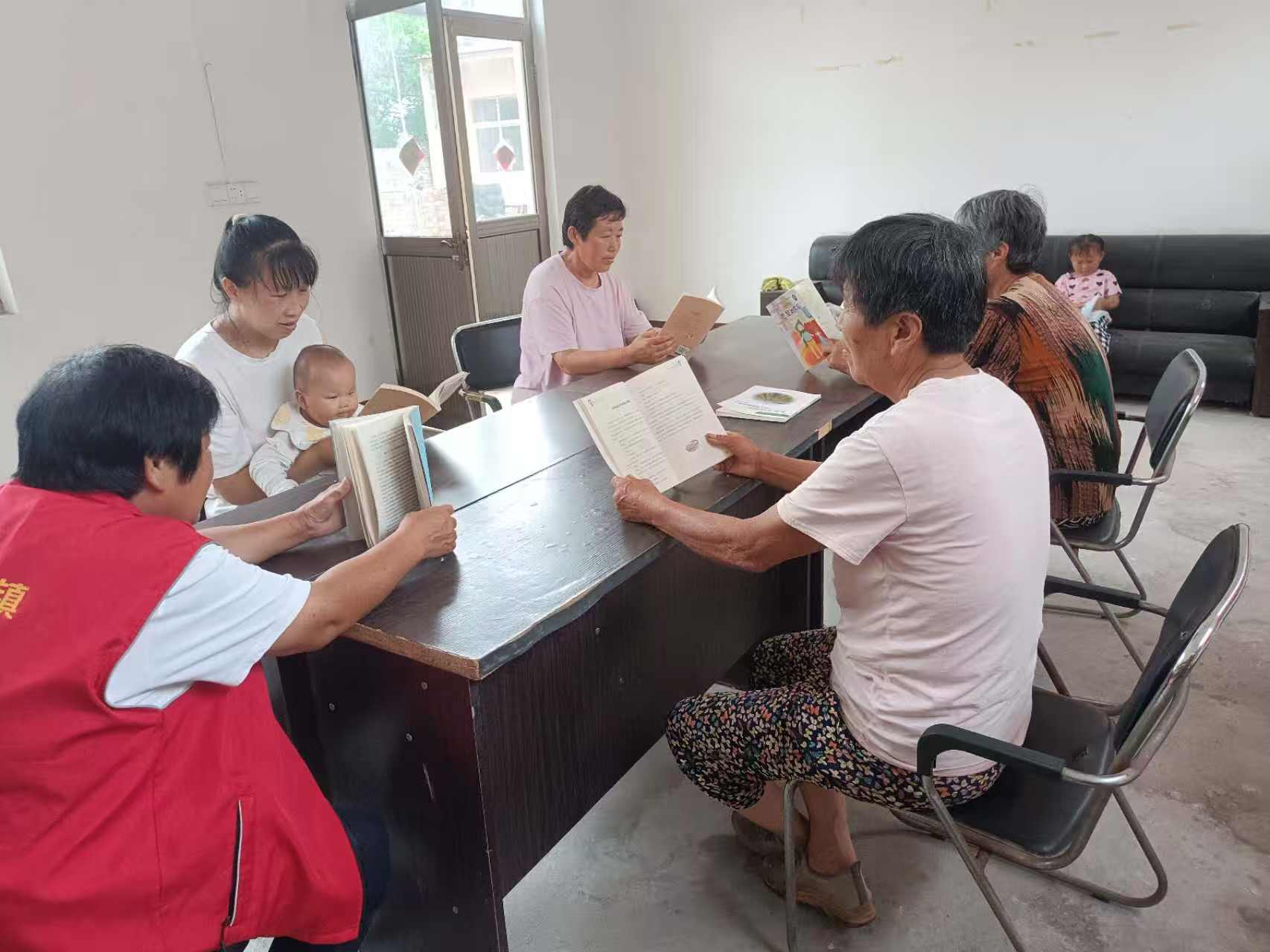 张坊村志愿服务队组织志愿者们为村民讲解党的光辉历史和党员干部的光辉事迹以及党的政策,提升村民对党的归属感