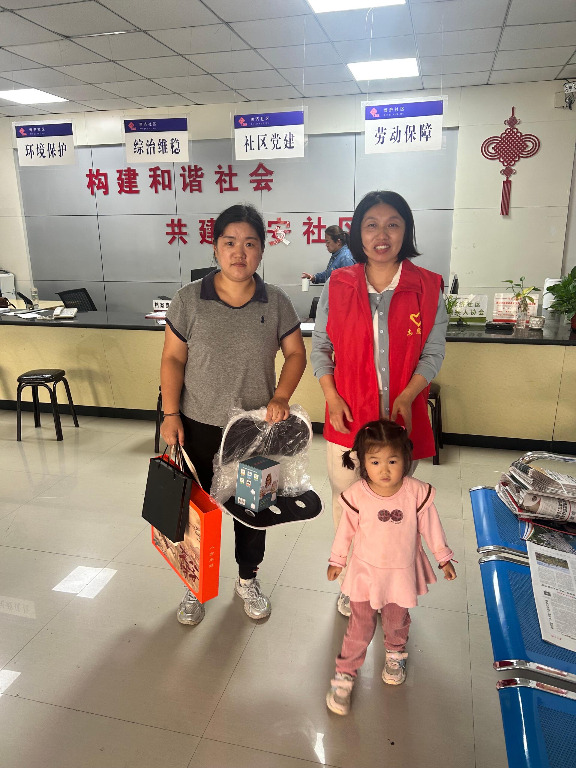 在中秋节来临之际,为贫困儿童送去折叠桌 月饼礼盒等慰问礼品,让儿童感受到社区的关怀,倾听她们的心声。