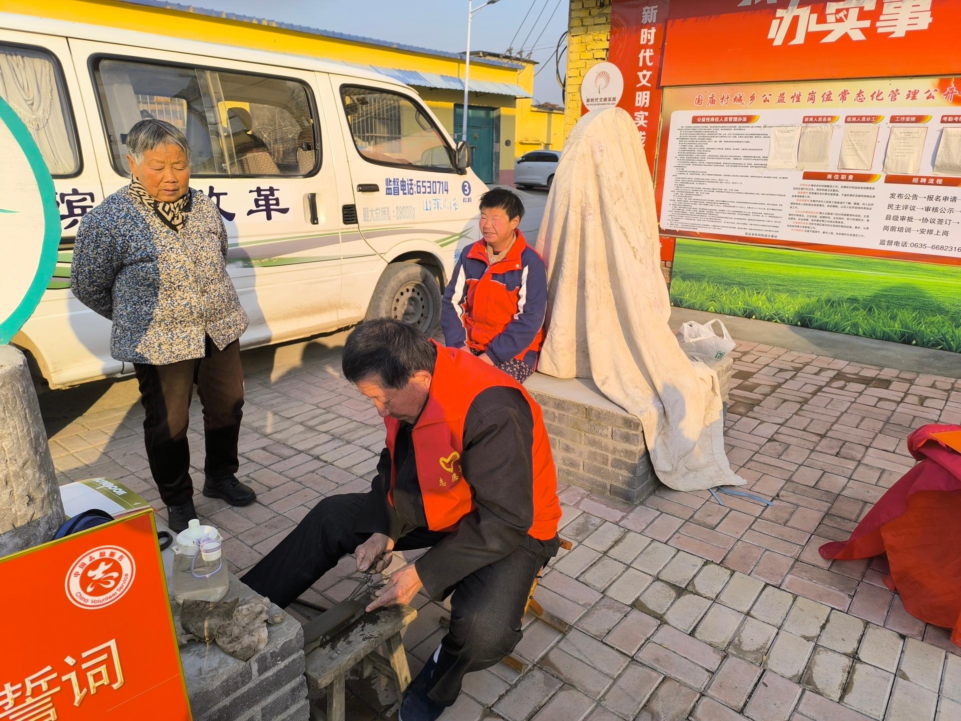 情暖夕阳,《爱民志愿服务队》为65岁以上老人残障及困难群体,理发、按摩、磨剪刀。重温志愿者誓词,践行全心全意为人民服务
