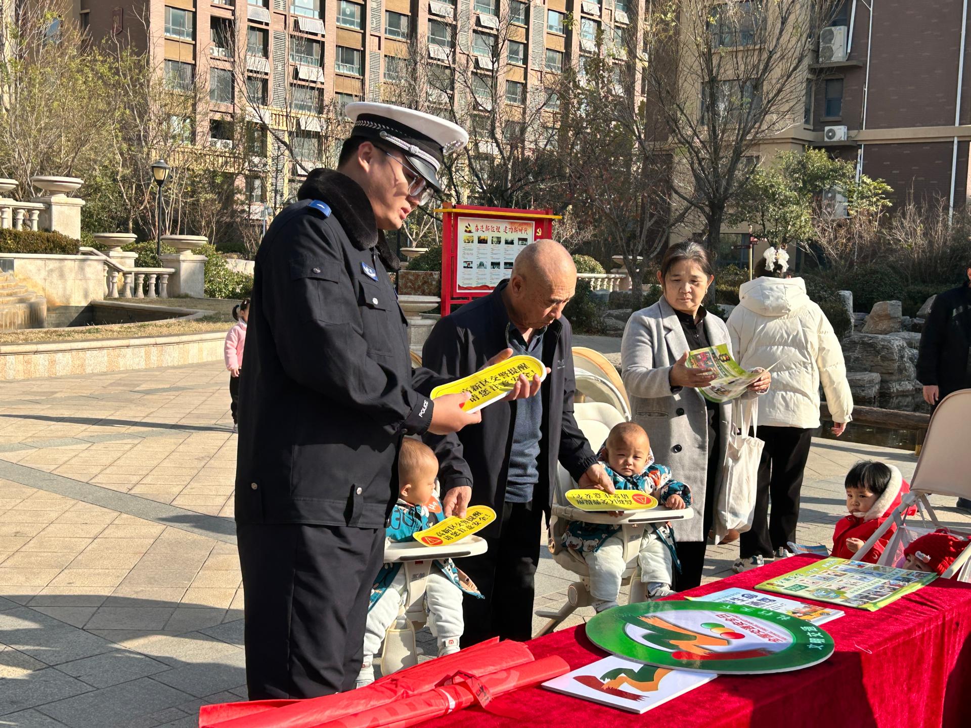 为进一步加强冬季交通安全宣传教育工作,增强社区群众交通安全意识,全力预防和减少道路交通事故。庐山路社区联合高新区交通管理大队宣传民警走进社区开展交通安全宣传活动。