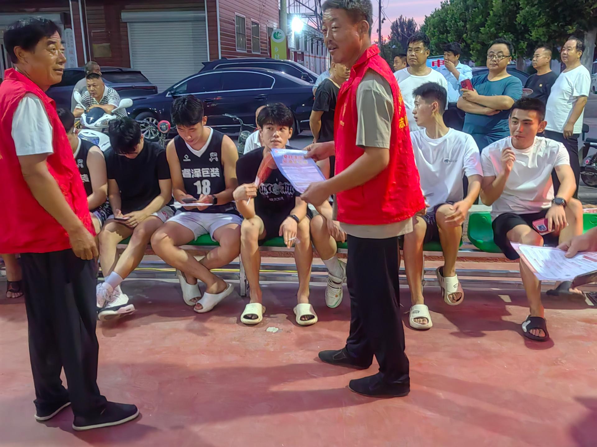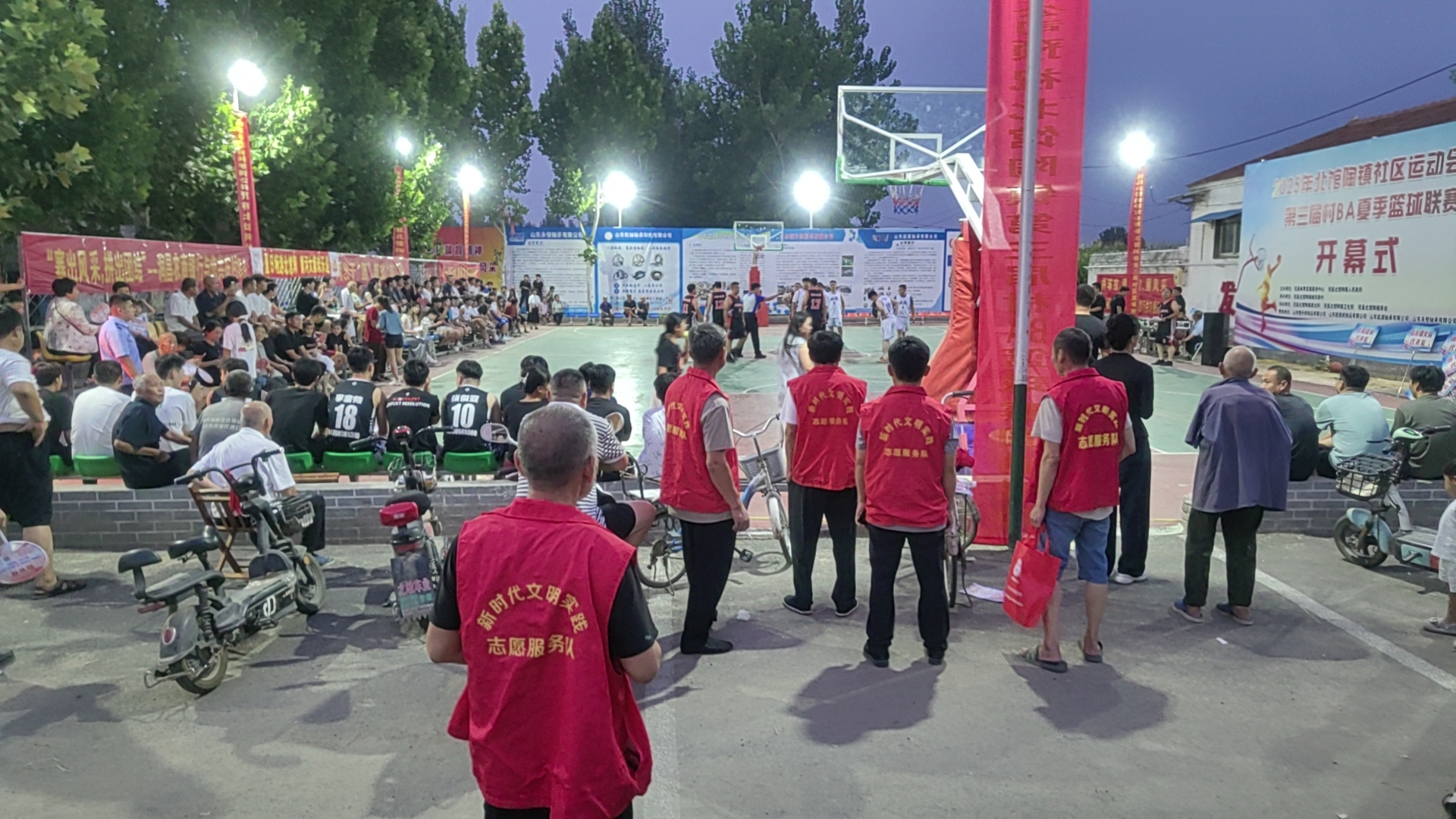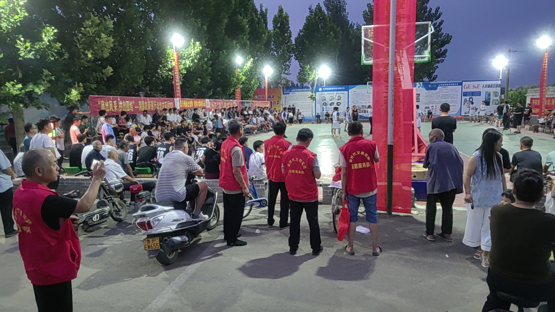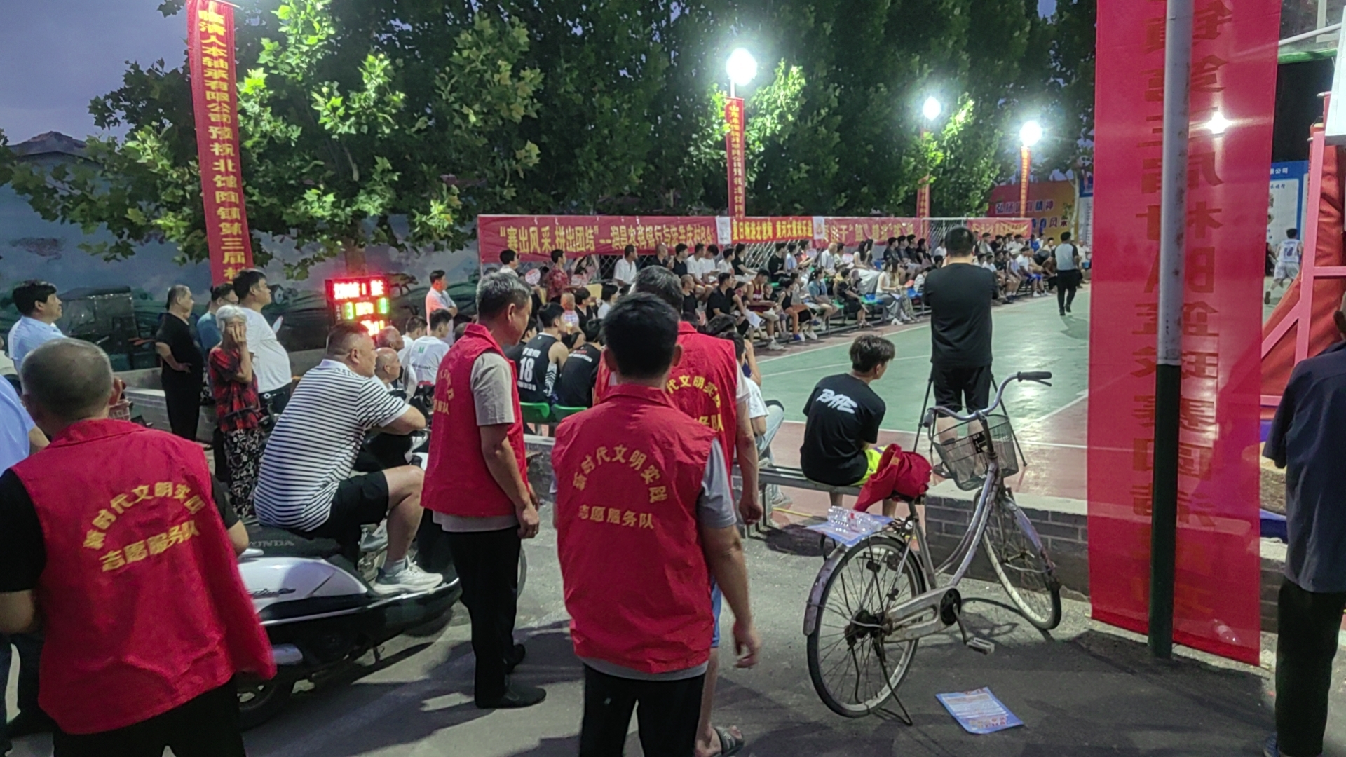 北馆陶镇驻地开展夏季联赛魏庄村BA赛事活动,我们新时代文明实践志愿者身穿红马甲参与本次活动的秩序、宣传移风易俗等活动,