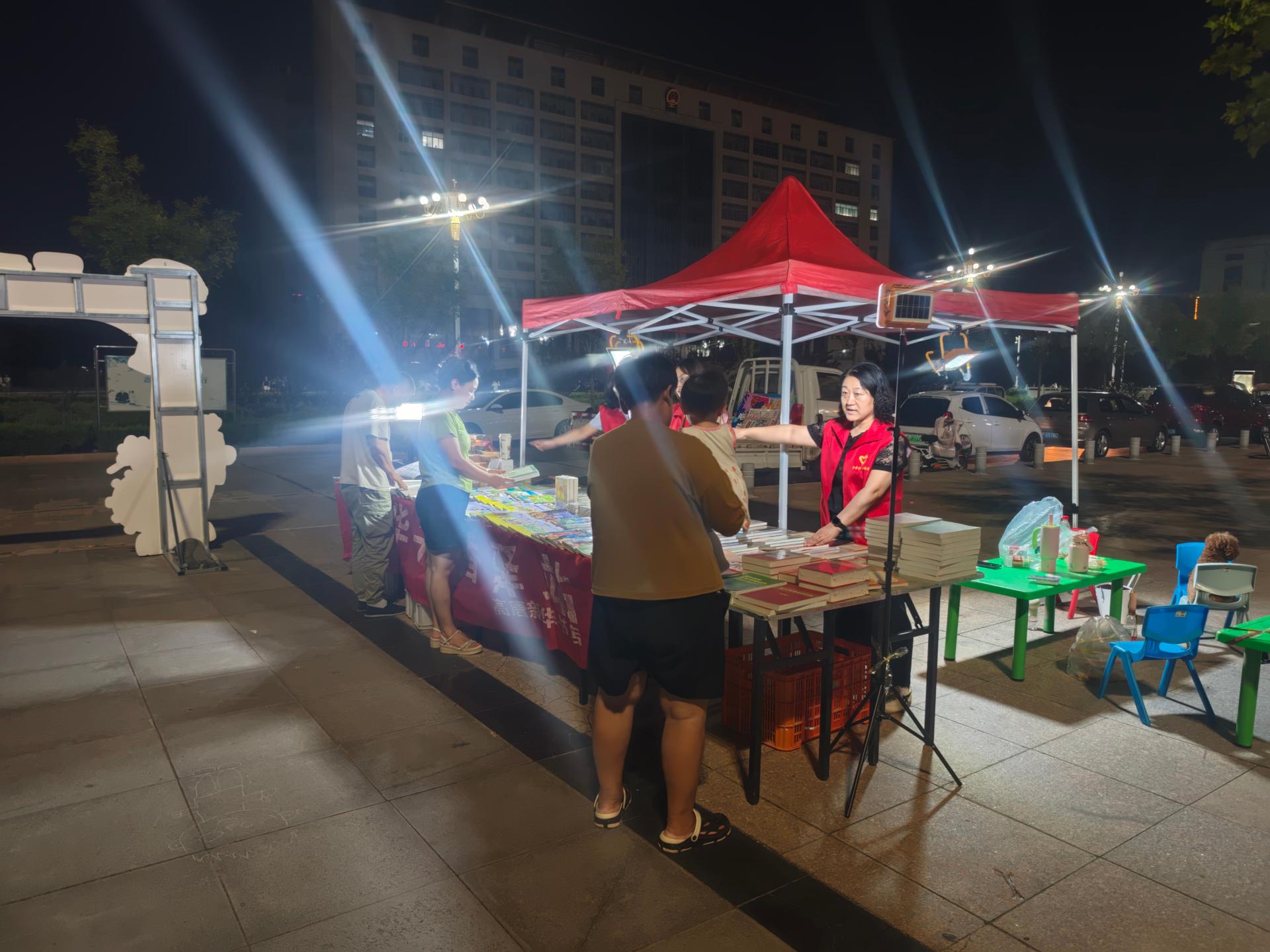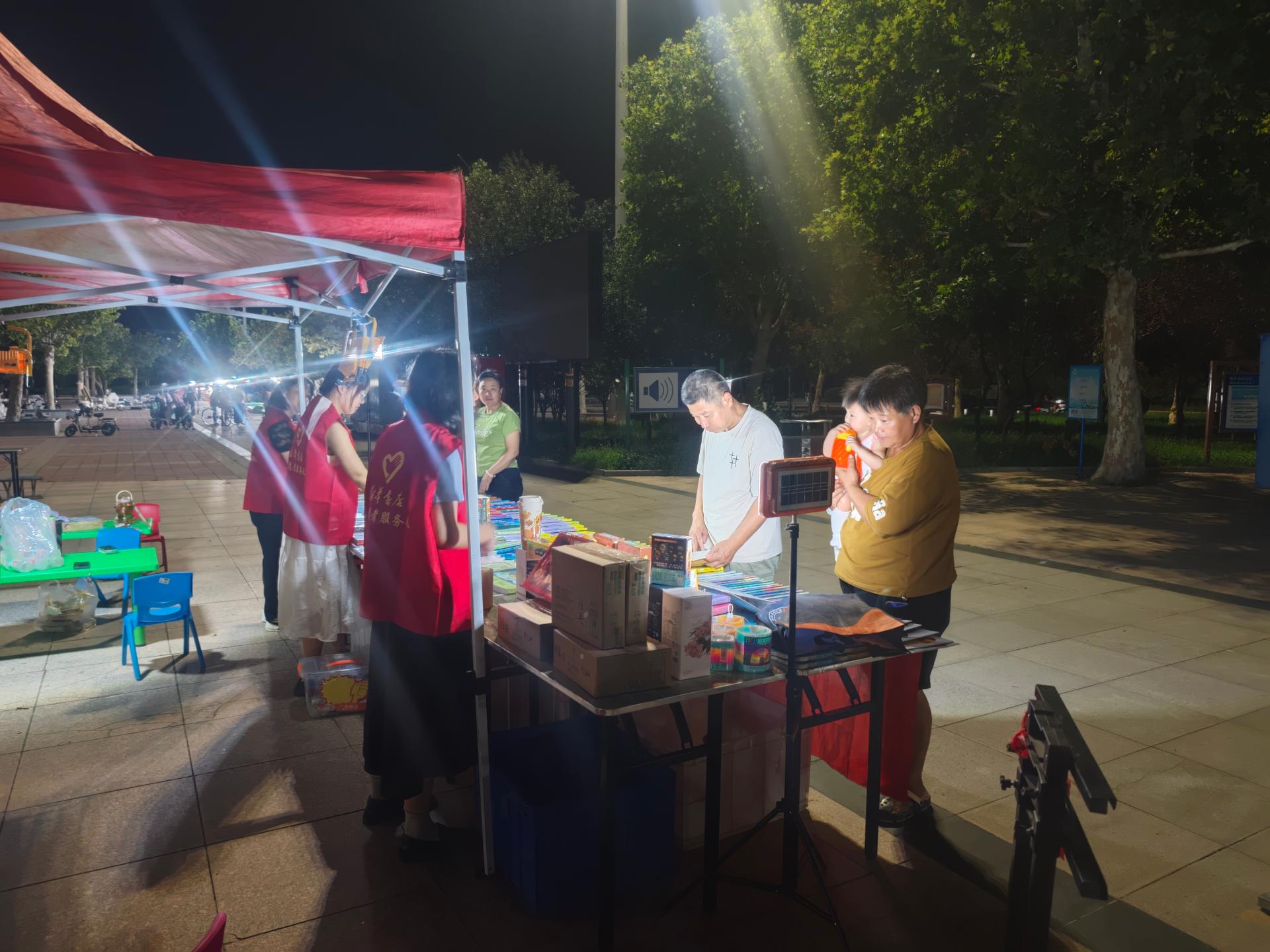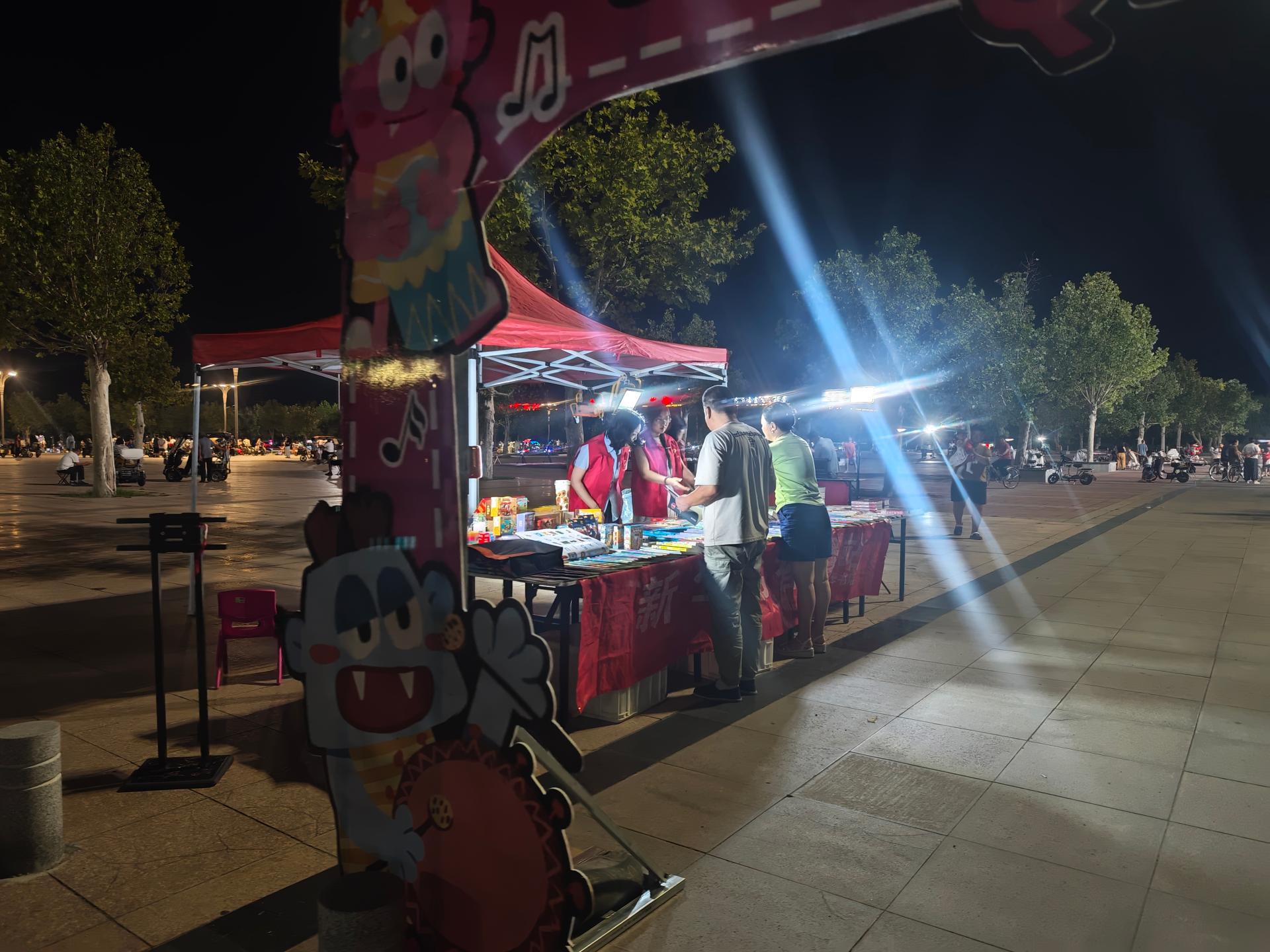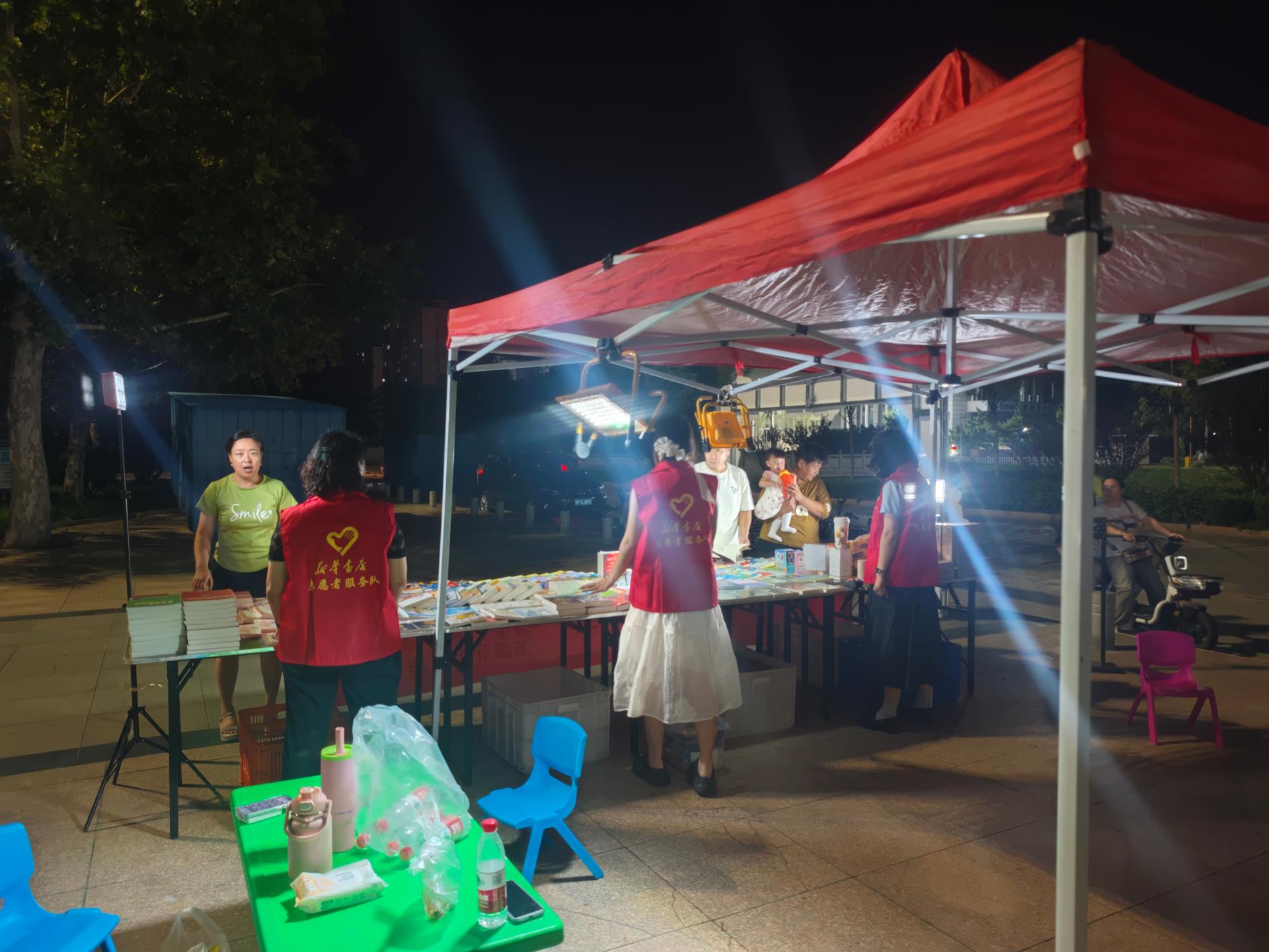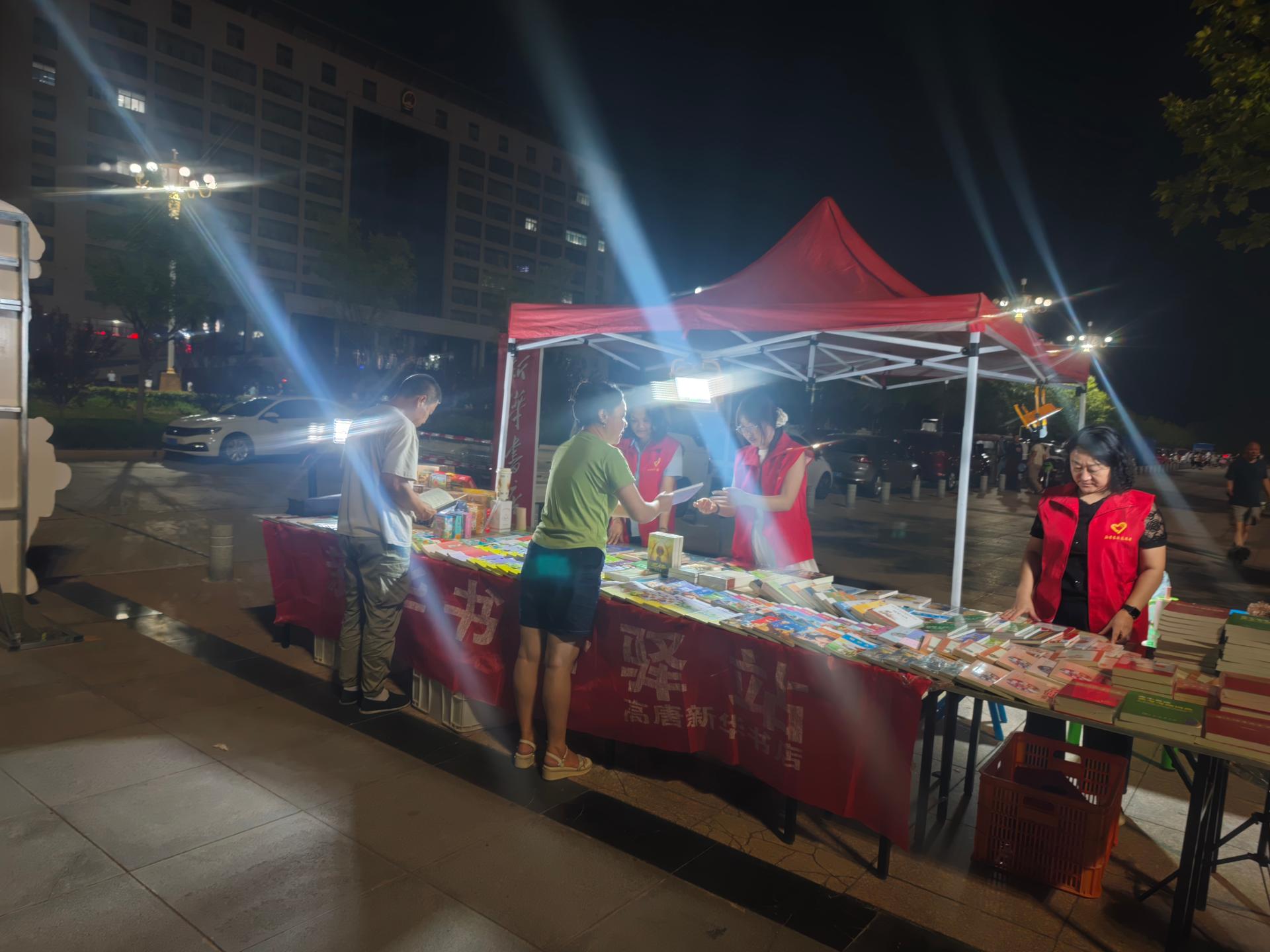 新华书店志愿者在图书夜市协助布置展台、整理书籍、引导读者选购、维护秩序,并提供阅读推荐和咨询,助力文化惠民活动开展。通过志愿服务推广全民阅读,提升市民文化获得感,增强书店与社区的互动,传递知识共享理念。践行社会责任,助力书香社会建设。