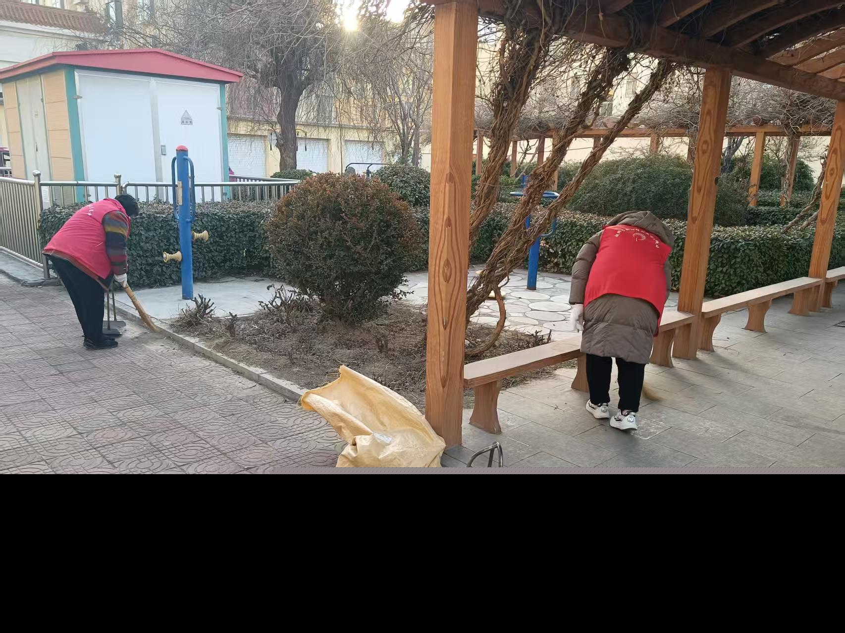 志愿者无怨无悔为小区打扫卫生,清理垃圾,不怕天气寒冷,照常为小区服务,全心全意为小区服务,为老人上门服务。见者就像是一块砖,哪里用到哪里,搬哪里有困难,哪里就有志愿者
