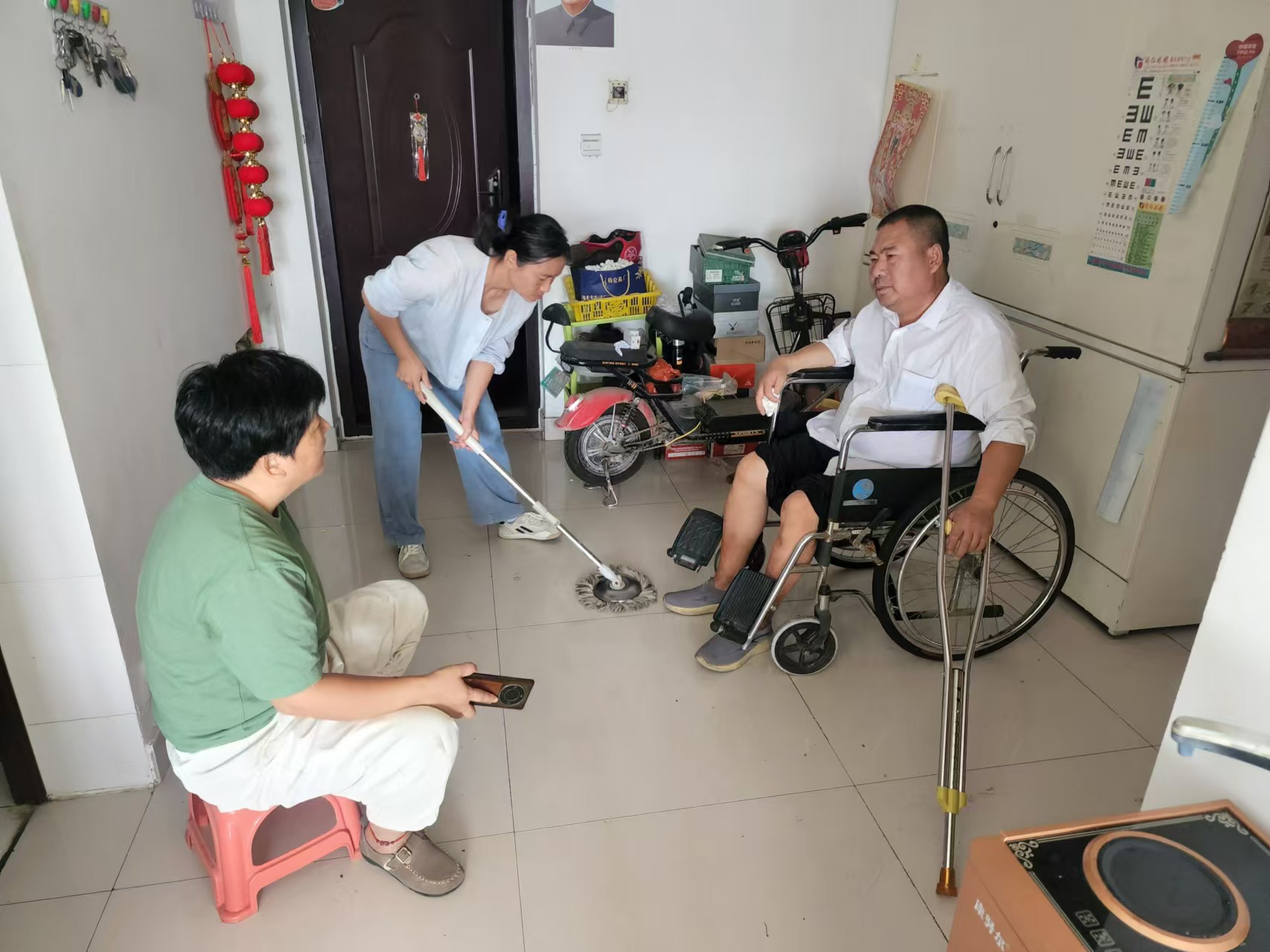 高三里社区组织志愿者开展主题为:为困难群众服务志愿活动,活动中志愿者们走进社区困难群众家中。和他促膝聊天,了解日常生活,为困难群众打扫卫生,让他们感受到我们社区的温暖和关怀。