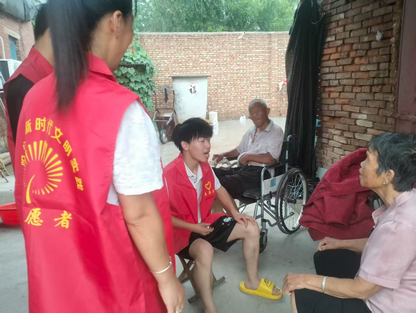 十五里园镇昌盛新村利用暑假期间开展“青春相伴,温情畅聊”活动,大学生去贫困留守老人家中陪老人聊聊天,关爱老人提升老人的幸福度