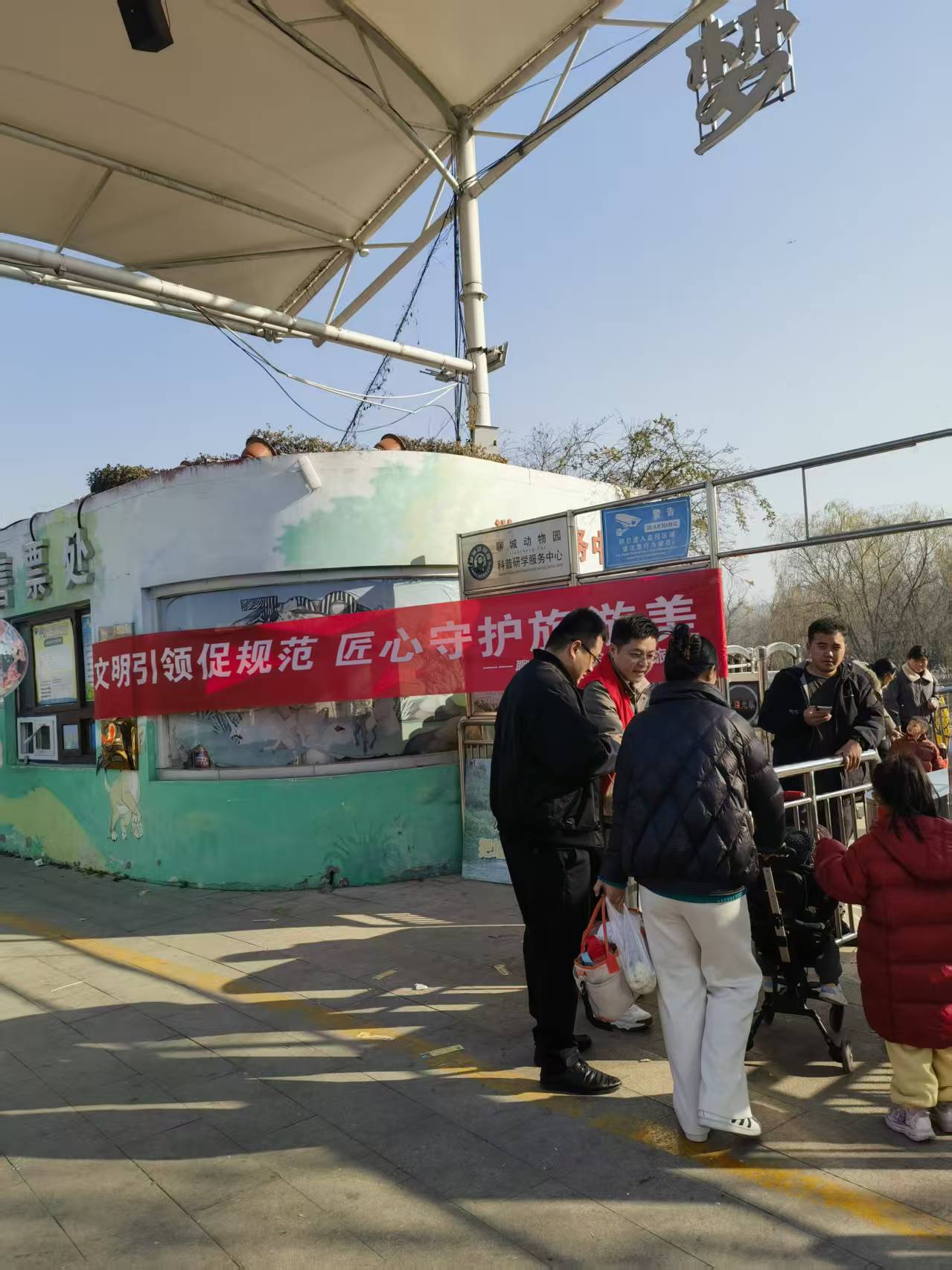 志愿者在聊城动物园设立“文明旅游志愿服务岗”,热情发放《文明旅游公约》、安全旅游文明出行宣传折页,耐心讲解文明旅游规范、出行安全。志愿者们还提醒游客出行不乱扔垃圾、自觉有序排队、选择正规旅行社、不参与低价游、引导大家自觉维护游览环境、提高警惕不贪小便宜,安全文明出行。通过开展文明旅游宣传志愿服务活动,广大群众激发了文明旅游热情,增强了文明出游安全意识。