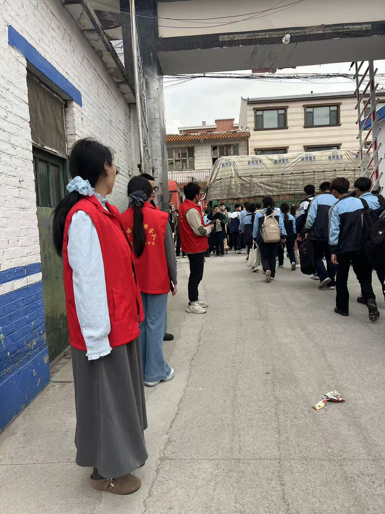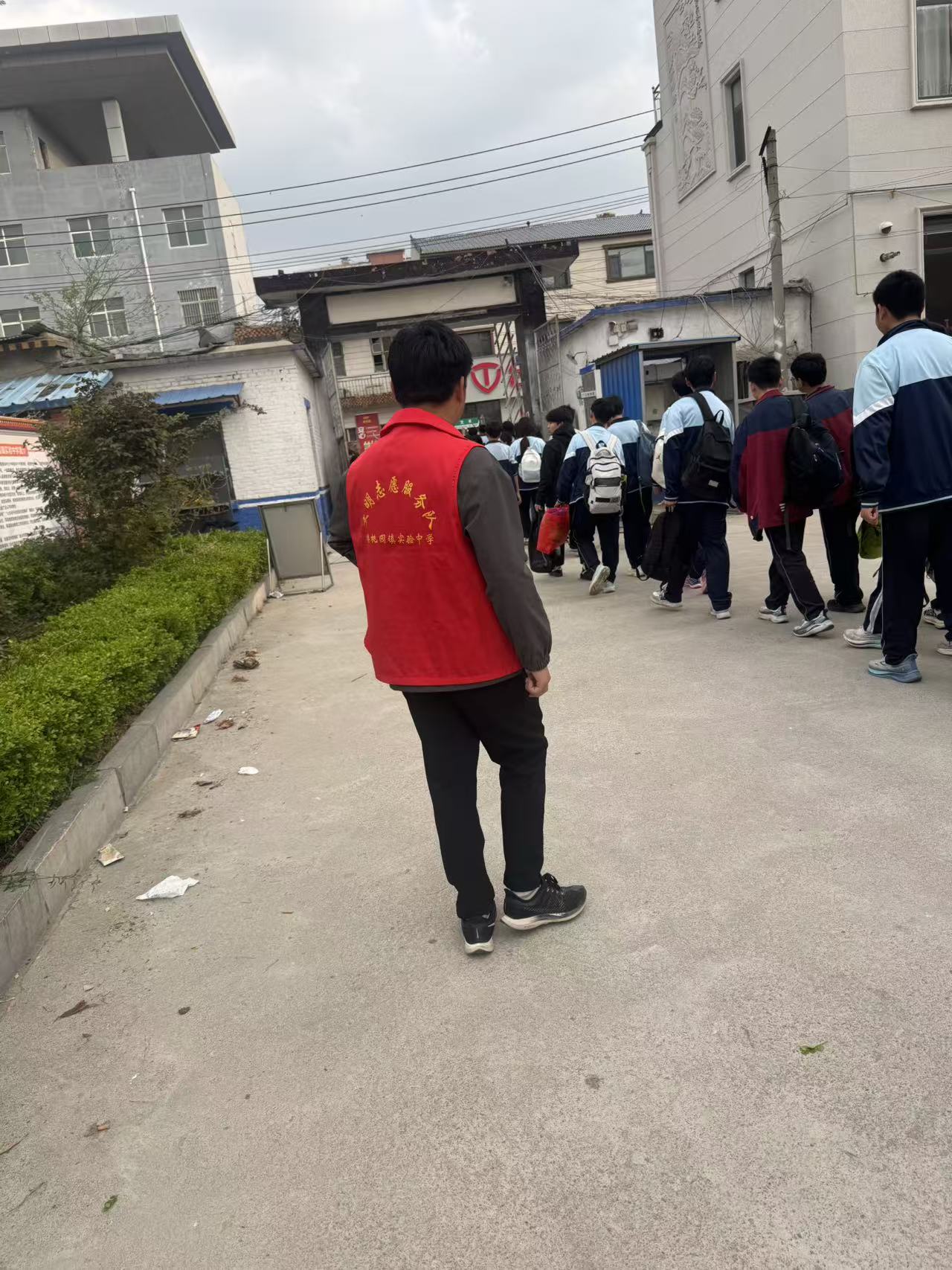 樱桃园镇实验中学开展爱心公路执勤文明实践活动,维护交通秩序,保障学生安全,弘扬志愿精神,助力文明出行。