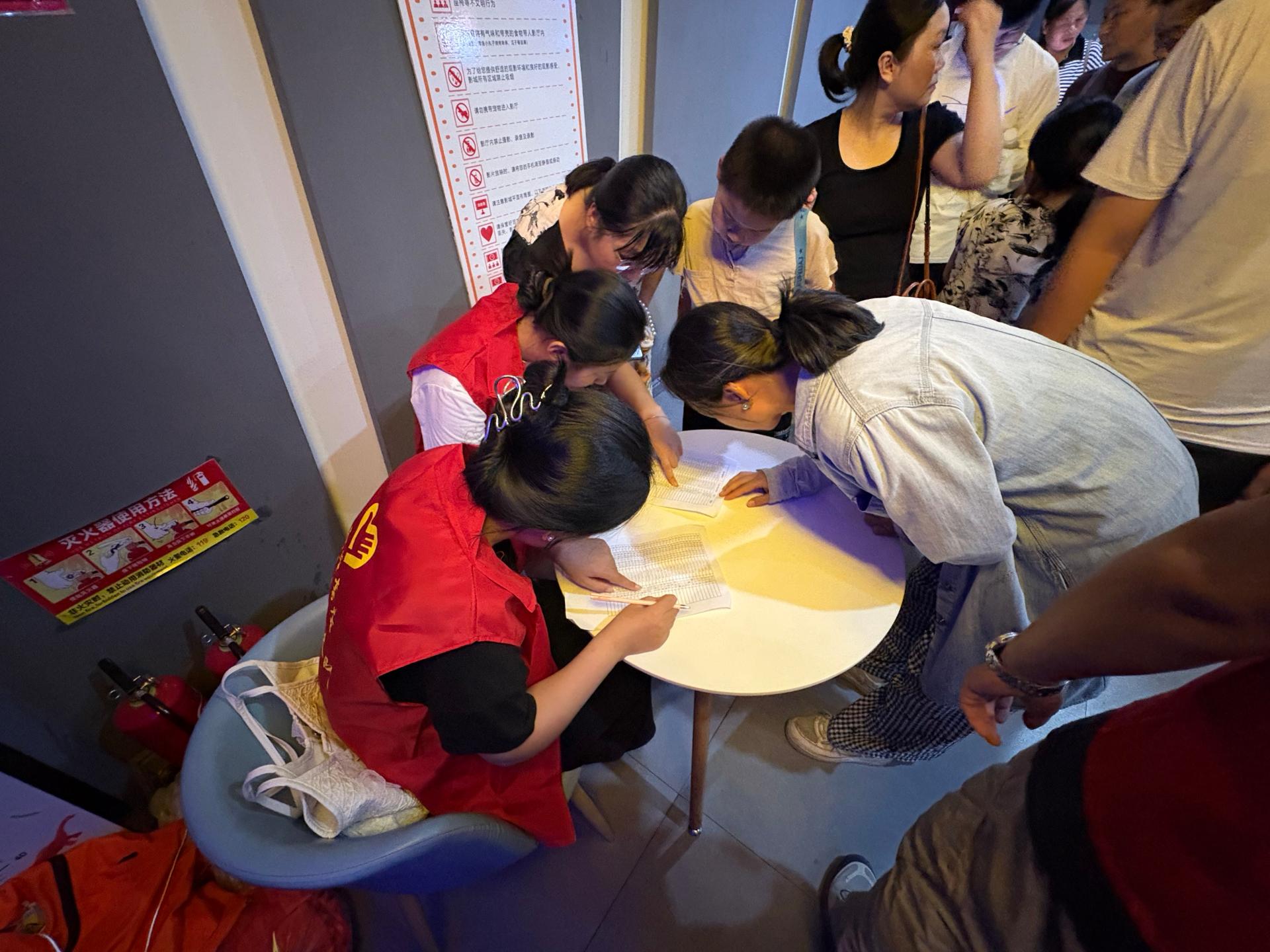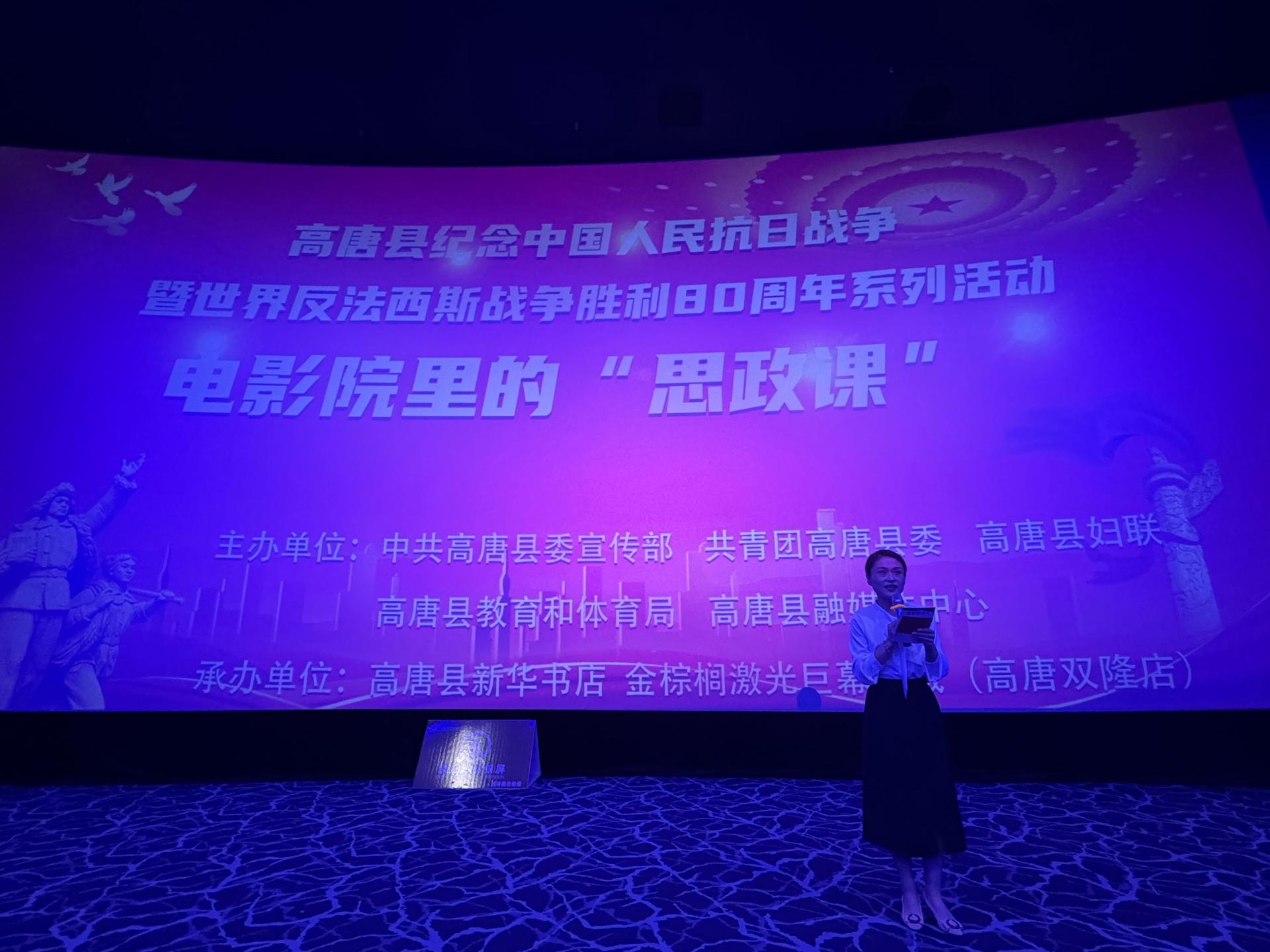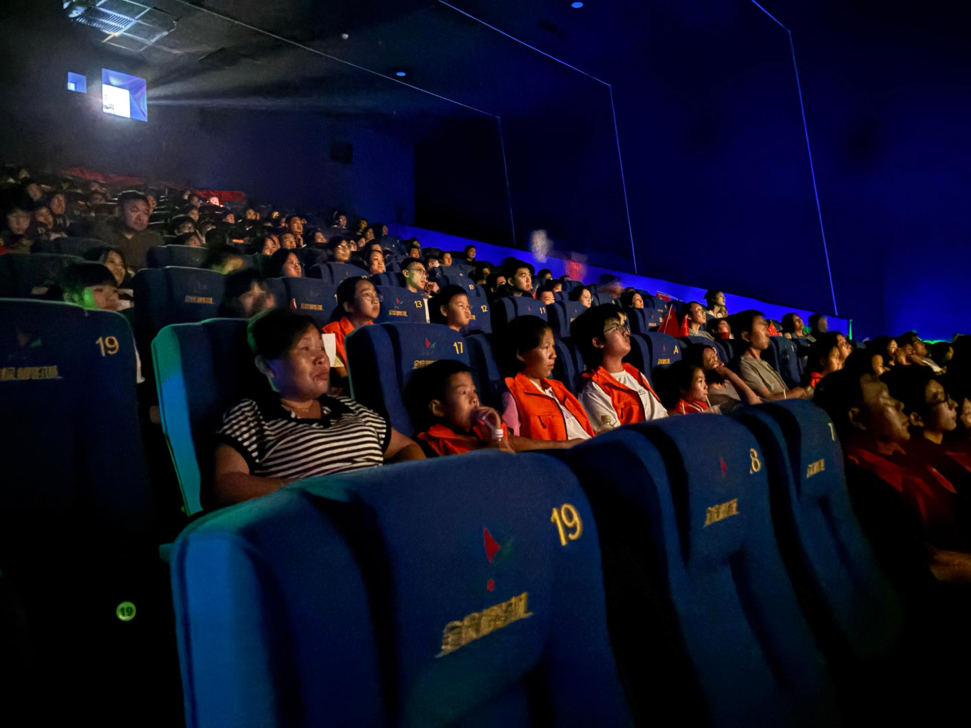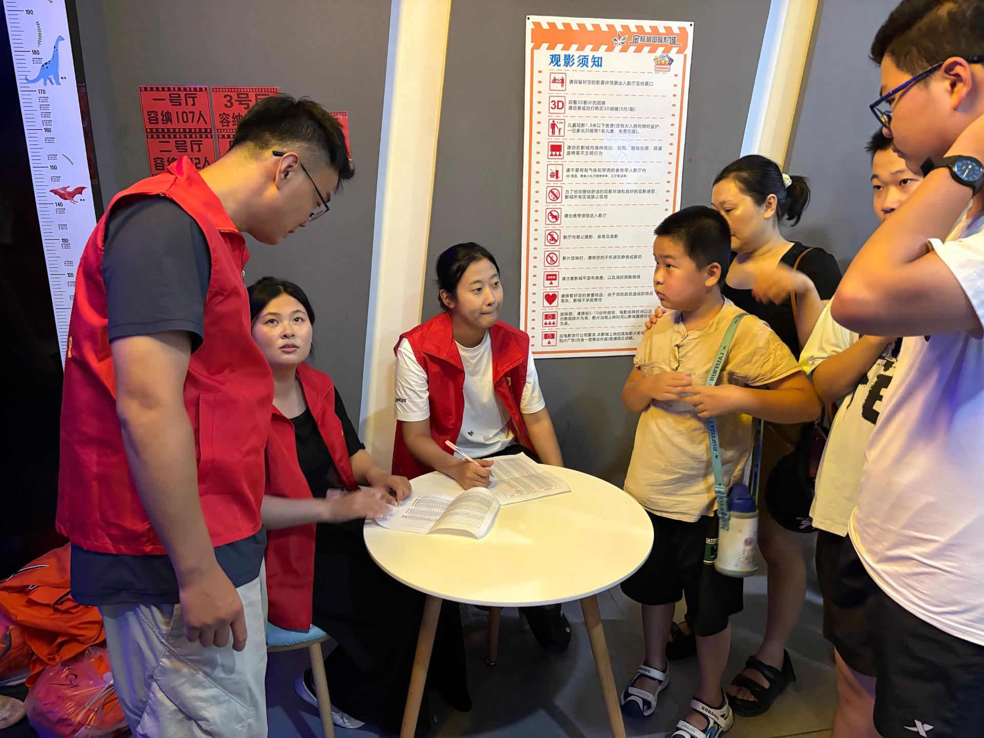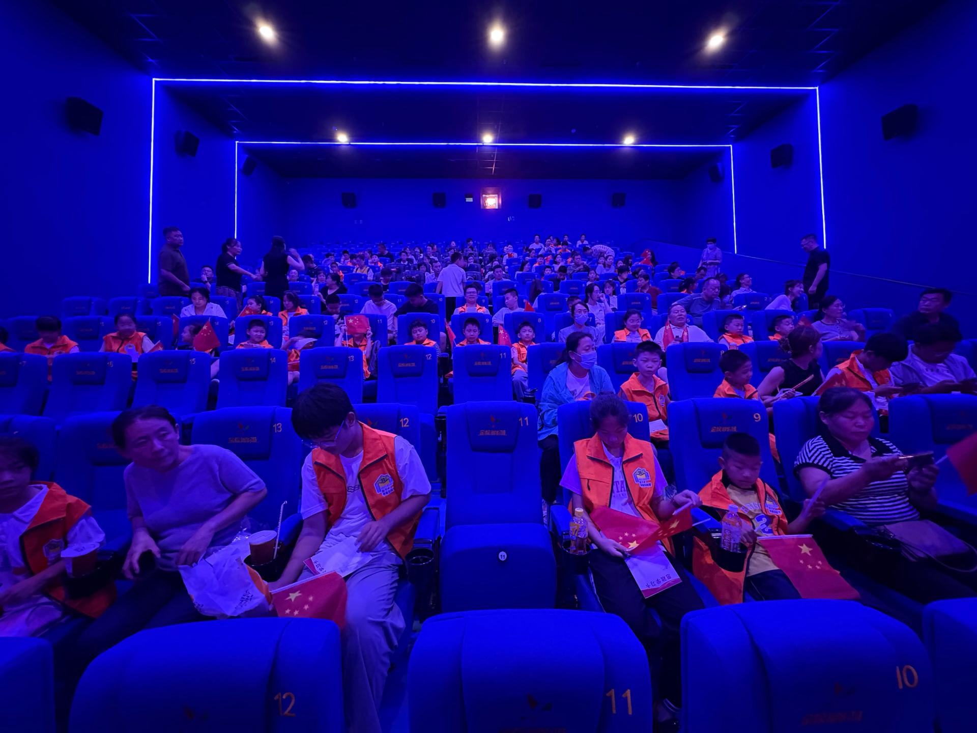 8月15日下午,在双隆购物广场影院,新华书店志愿服务人员负责座位引导,现场秩序维护,互动活动服务等工作。以电影为载体,创新思政教育形式,深化爱国主义教育。弘扬抗战精神,传承红色记忆,增强民族凝聚力。引导公众铭记历史、珍爱和平,激发新时代奋斗力量。