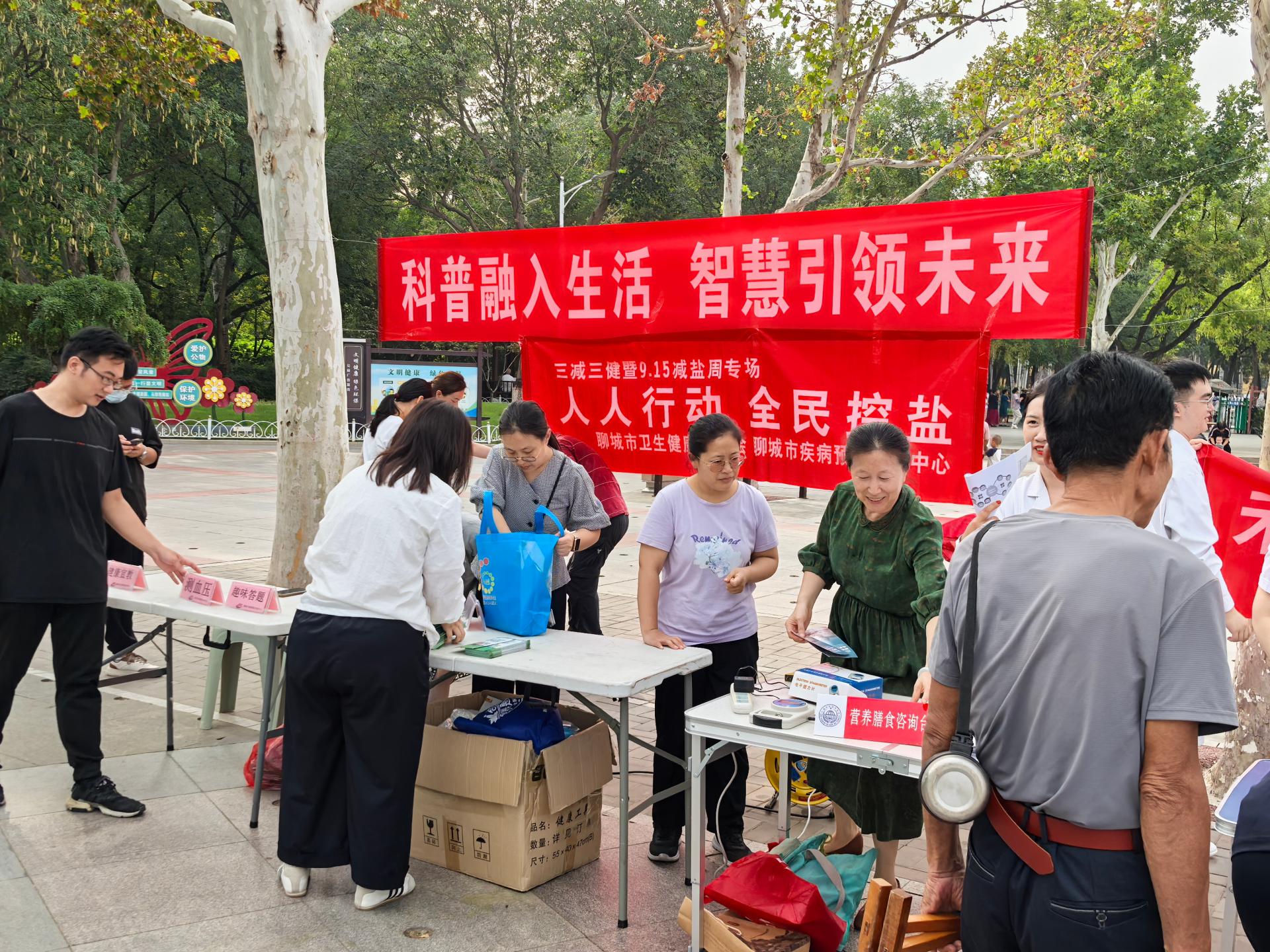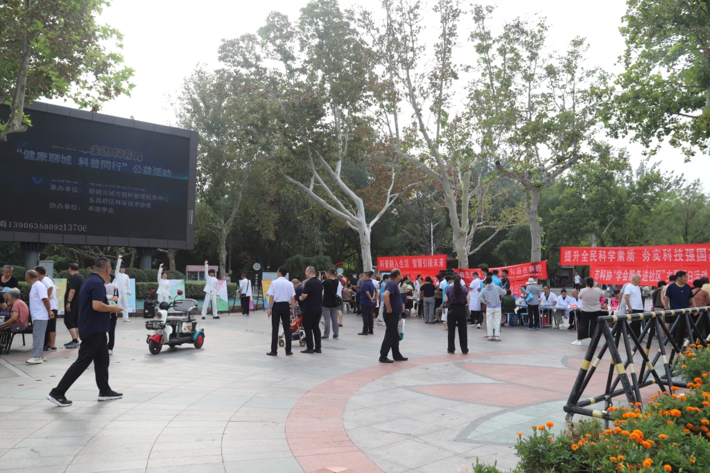 2005年全国科普月期间东昌府区科协组织健康协会在聊城公园开展志愿服务活动,请志愿者积极参加活动,树立好形象。
