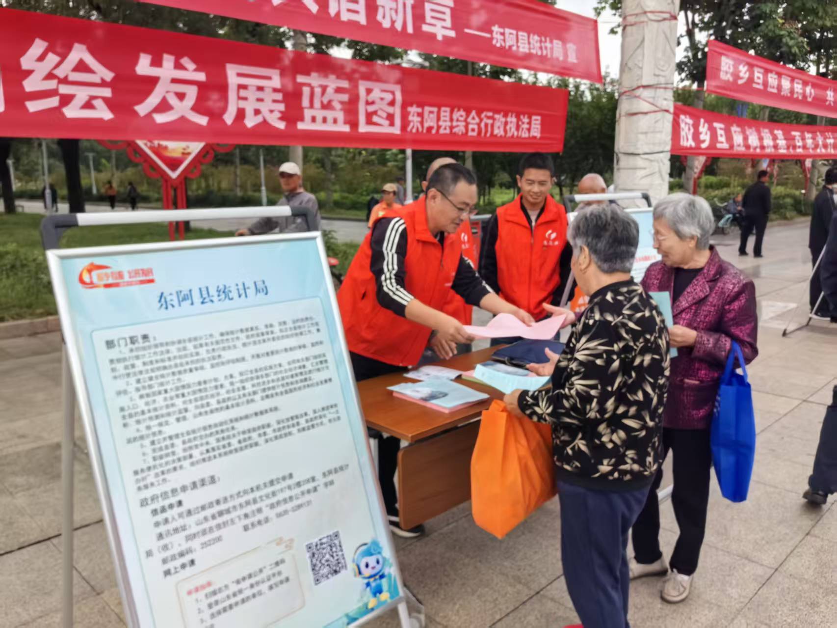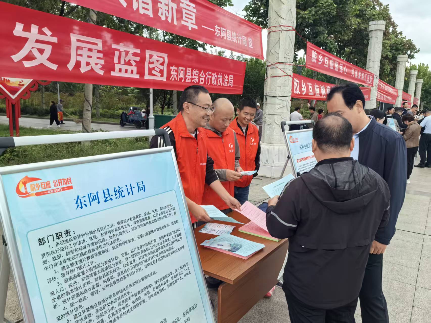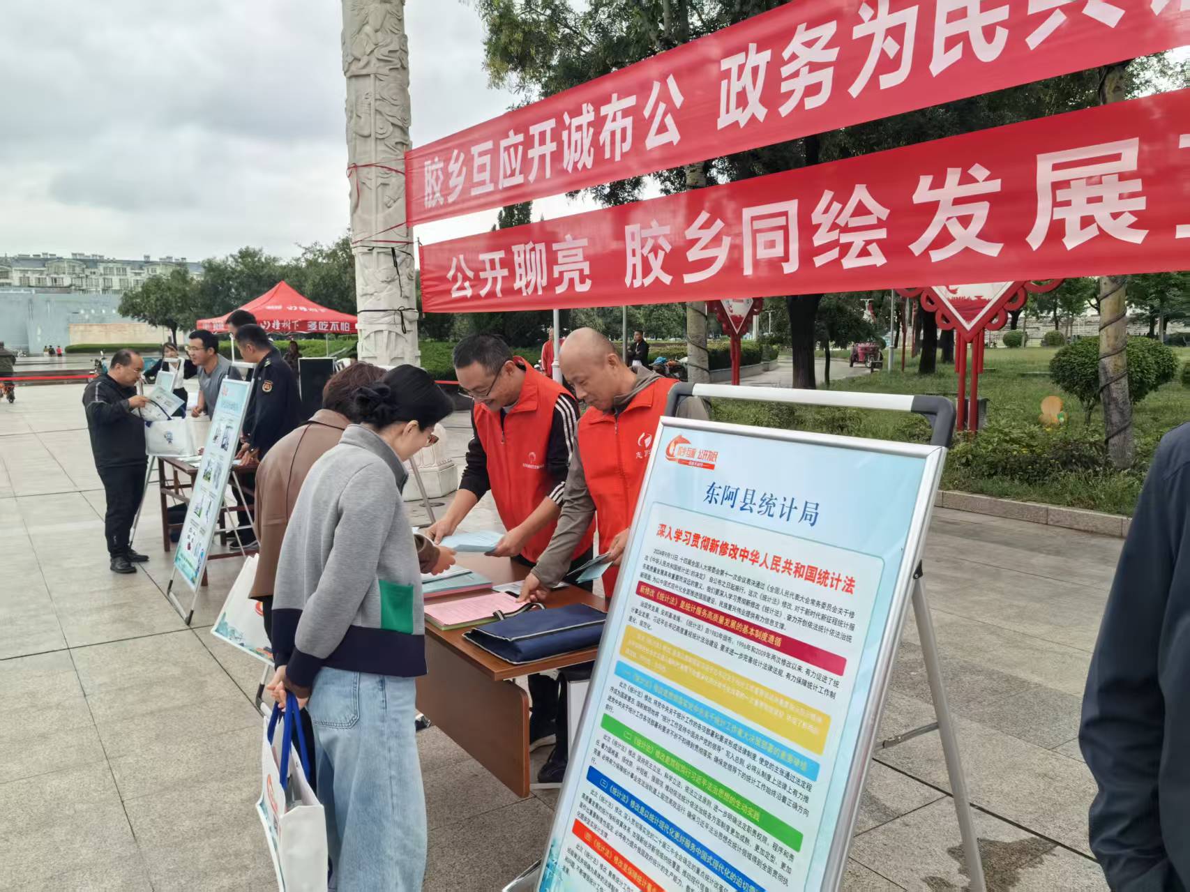 为促进统计公开透明,提升政府统计公信力,增进社会公众对统计工作的理解、认同与支持,县统计局组织志愿者们在广场设置咨询台,为广大市民宣传、解答统计法律法规知识。
