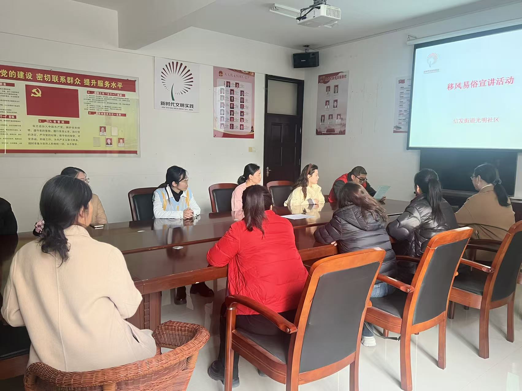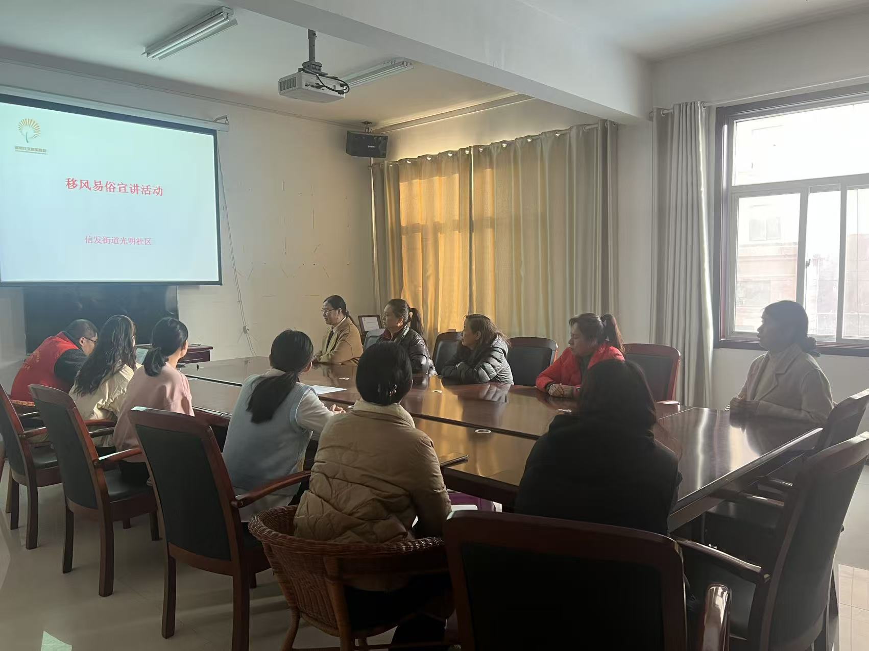 2025年11月21日,茌平区信发街道办事处光明社区新时代文明实践站开展移风易俗宣讲志愿服务活动。。