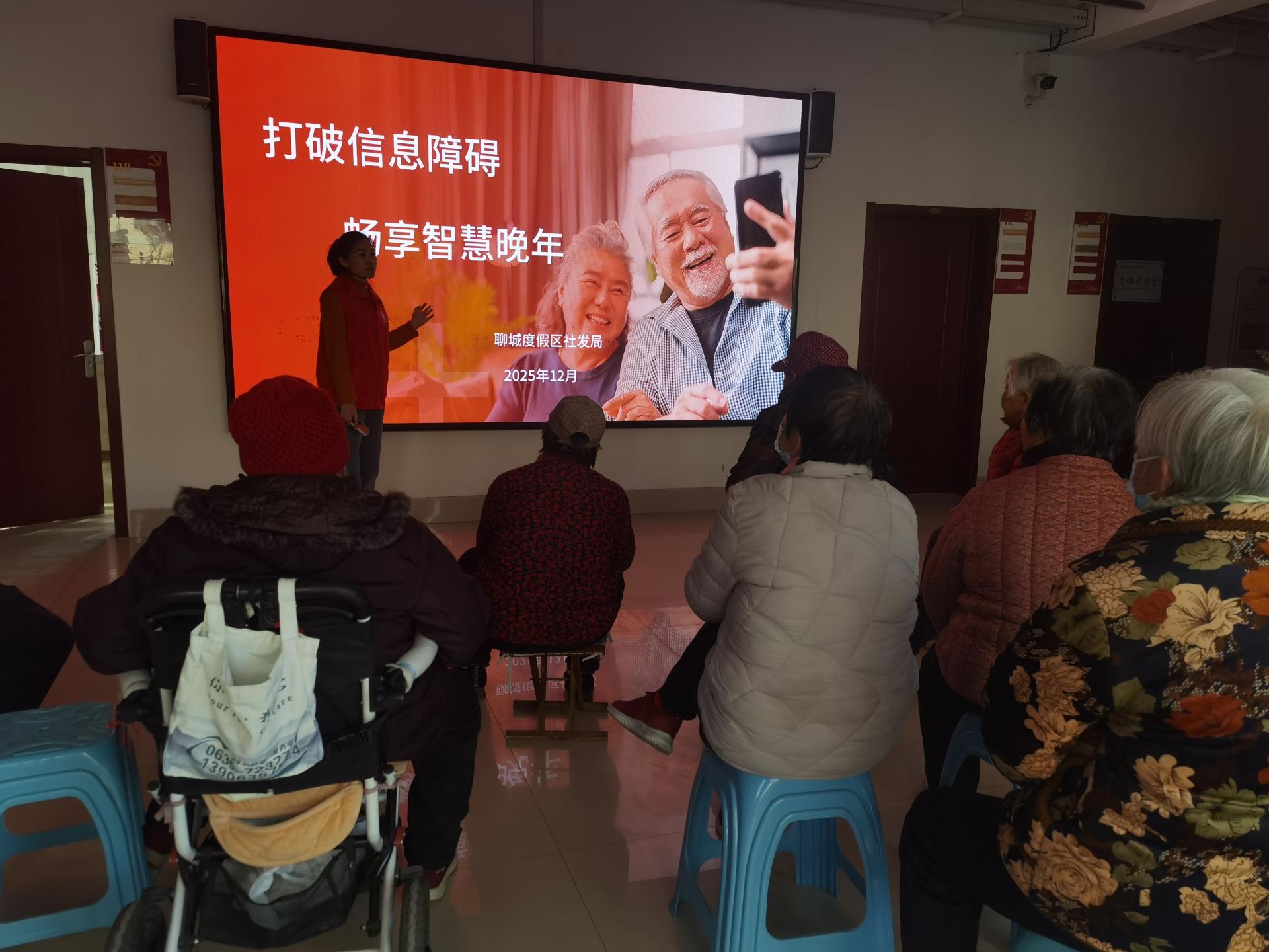 为助力老年群体掌握智能手机基础功能,融入数字化生活,度假区社发局开展“打破信息障碍,畅享智慧晚年”智慧助老志愿宣讲活动。