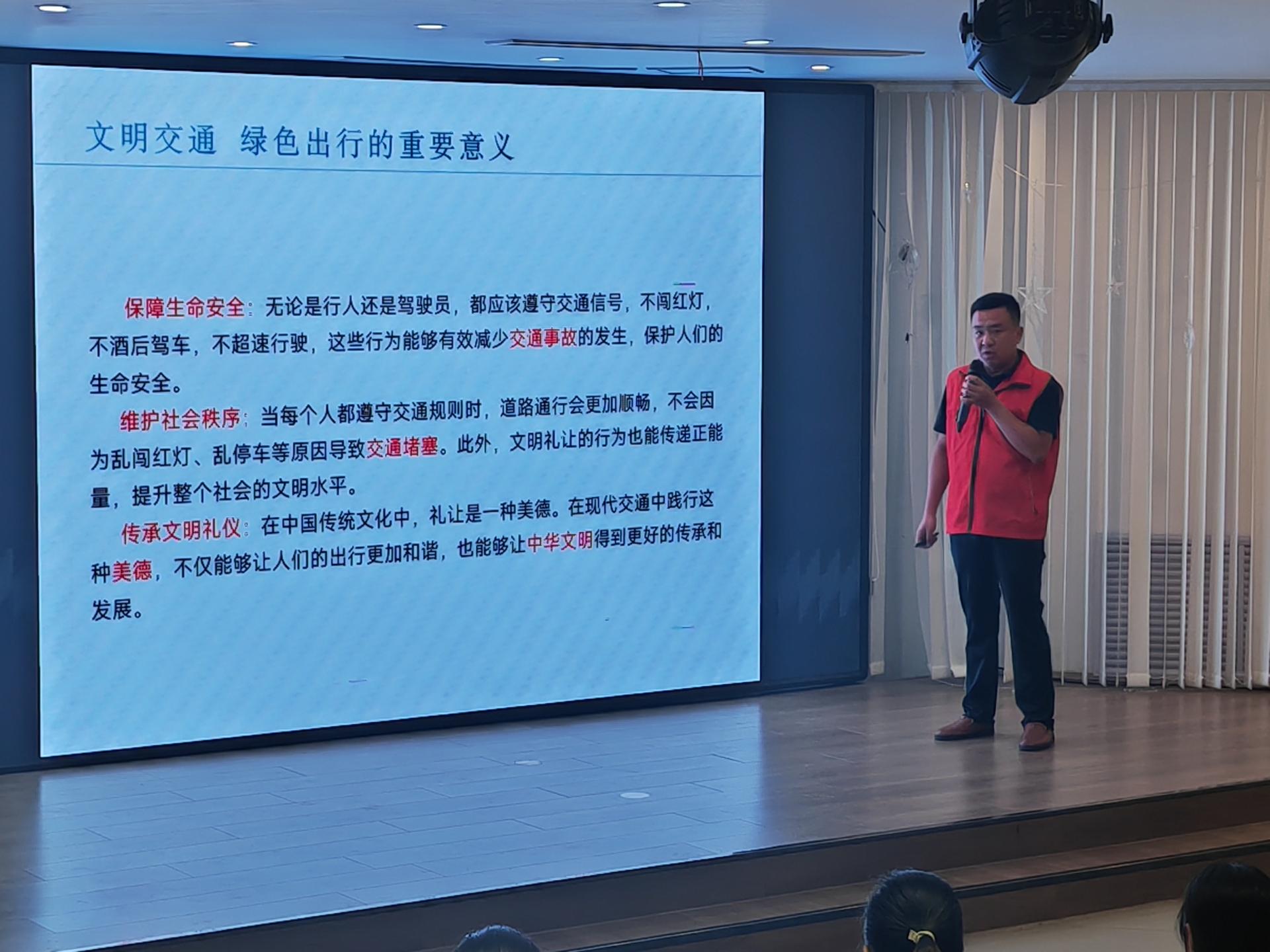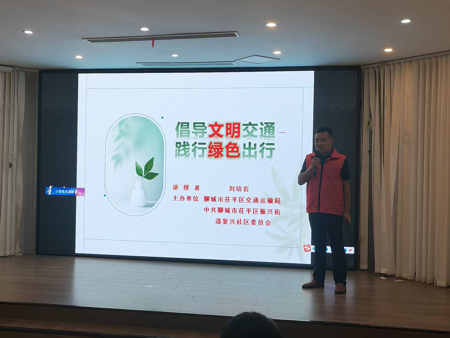 组织区交通运输局志愿服务队到复兴社区开展志愿服务活动,讲解文明交通绿色出行相关概念,实践意义等知识。
