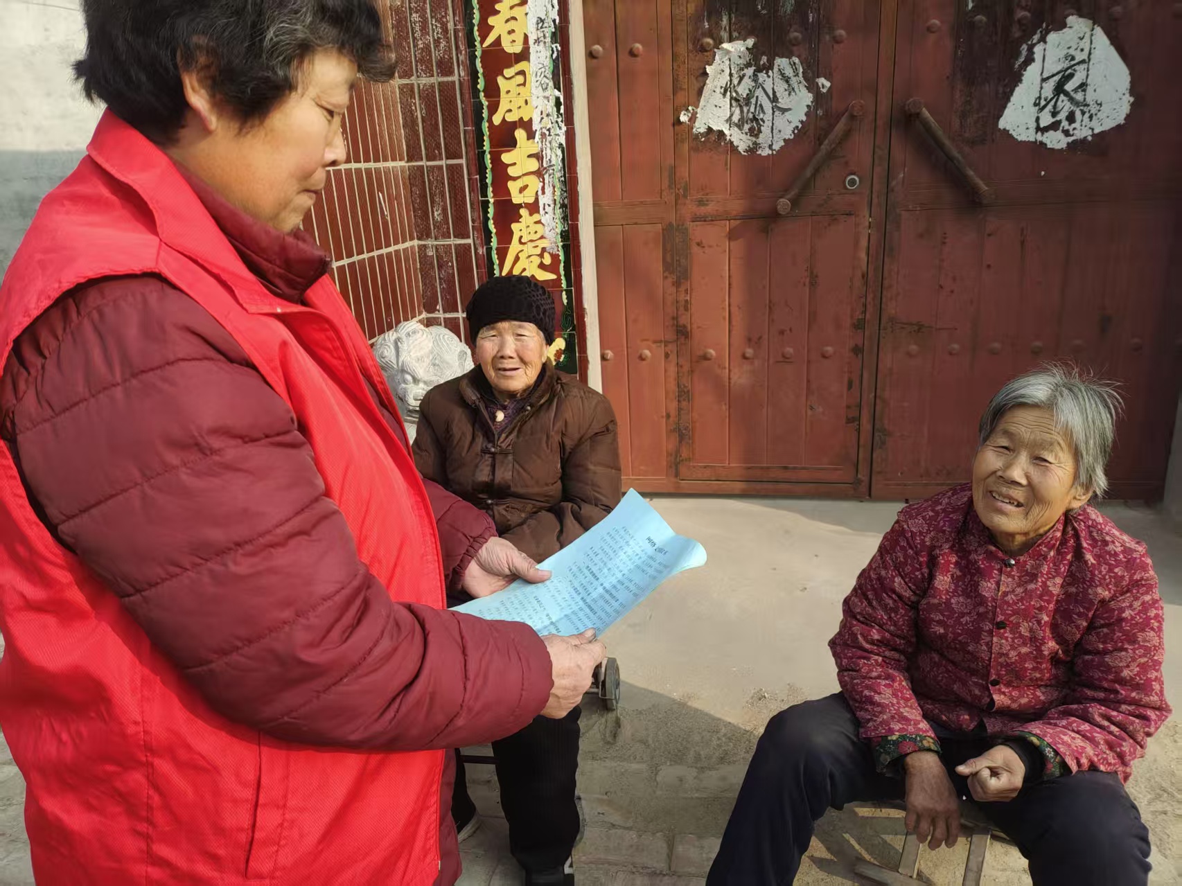 八里新村志愿者在李八里开展“关爱老人”的志愿服务活动,活动中志愿者走访本村的老人家里,对其进行关怀和慰问。